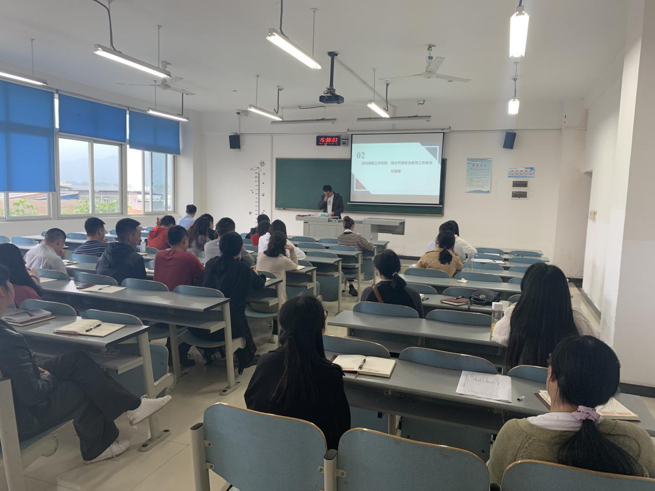 本次安全教育专题会传达了学校关于五·一节前安全专题会议精神,同时结合我院工作实际,提出节前安全教育工作要求:加强自我防护,树牢常态化疫情防控意识;做好节前教师办公室、学生寝室的安全大排查;落实好学生节前和节后安全专题教育;提高防骗的意识和能力;党员同志要时刻保持廉洁自律,同时加强舆论监督和引导,平安、快乐度过五一小长假。最后学校副校长兼学院院长唐春林做安全工作强调。