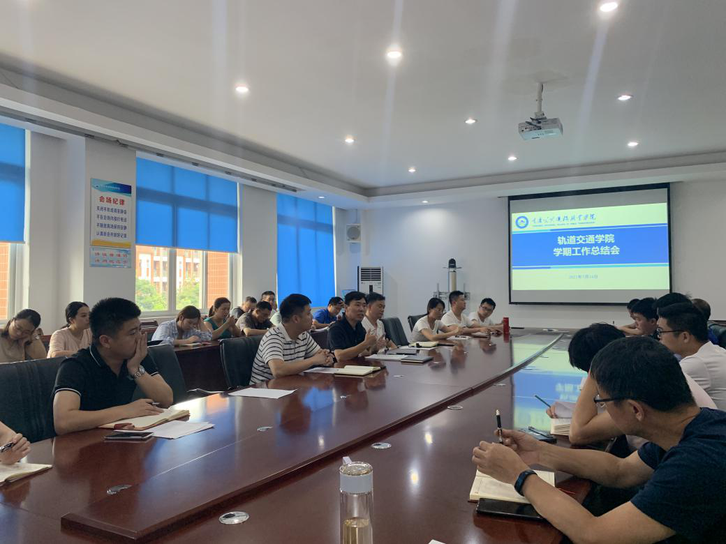7月14日下午,轨道交通学院在A401会议室召开2020-2021学年第二学期期末总结大会,全面回顾一学期来学院的各项工作,并安排部署下学期工作,轨道交通学院全体教师参加了此次会议,会议由副院长蒋晶主持。