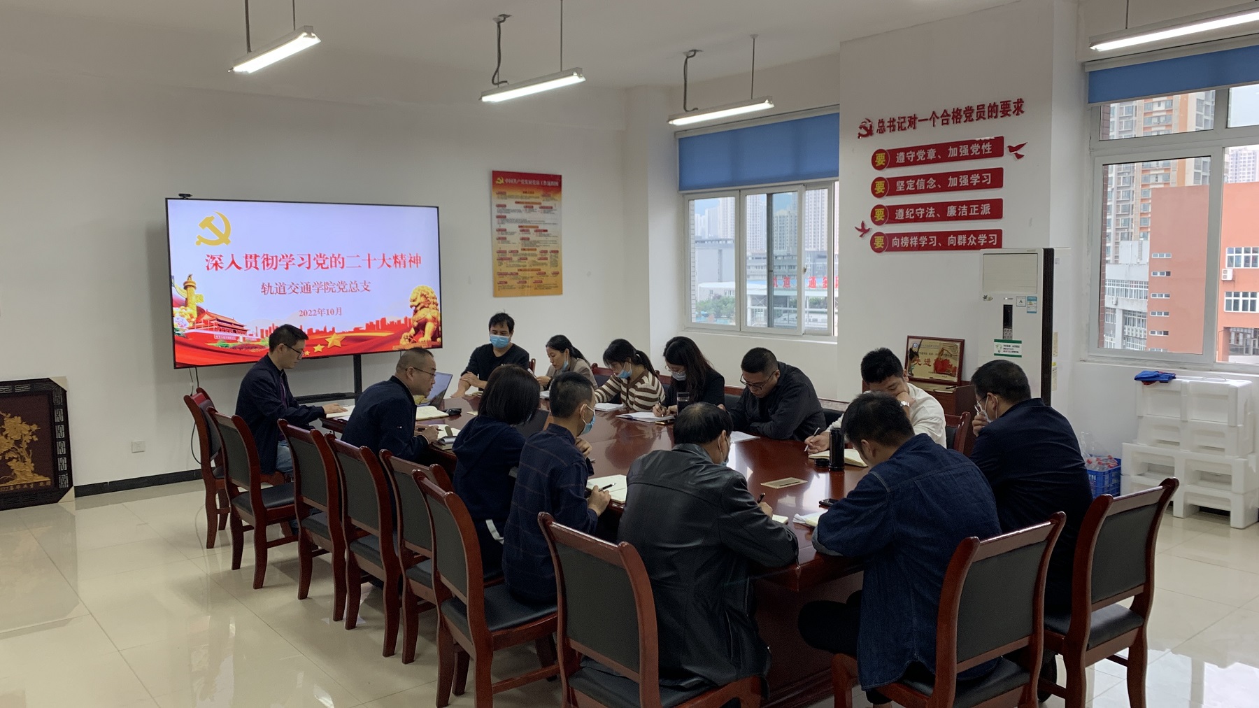 10月24日上午9:30主校区教学楼D509会议室,轨道交通学院党总支召开(扩大)会议专题学习贯彻党的二十大精神,学院领导班子、党总支委员、各专业负责人、办公室负责人参加会议。学院党总支副书记蒋晶主持会议。