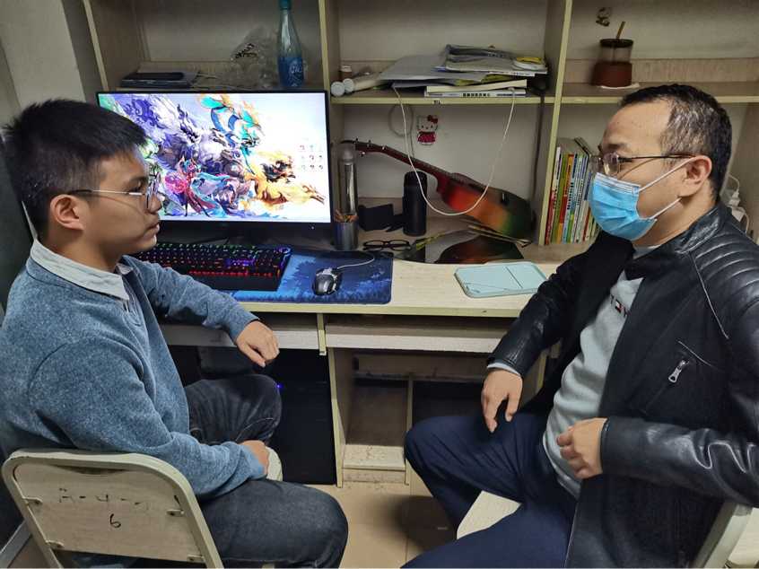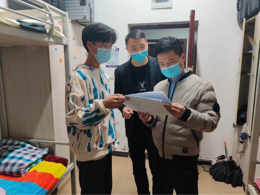 住在学校科学城主校区学生公寓轨道交通学院轨道车辆专业2022级7班的冯程同学没想到,平时多在教学楼见到的学院专任教师王涛,11月17日下午5点多钟竟然来到了自己所住的学生公寓A栋431寝室,与自己进行了深入交流,了解自己和同学的所思所想,做防控政策宣介和学业指导。