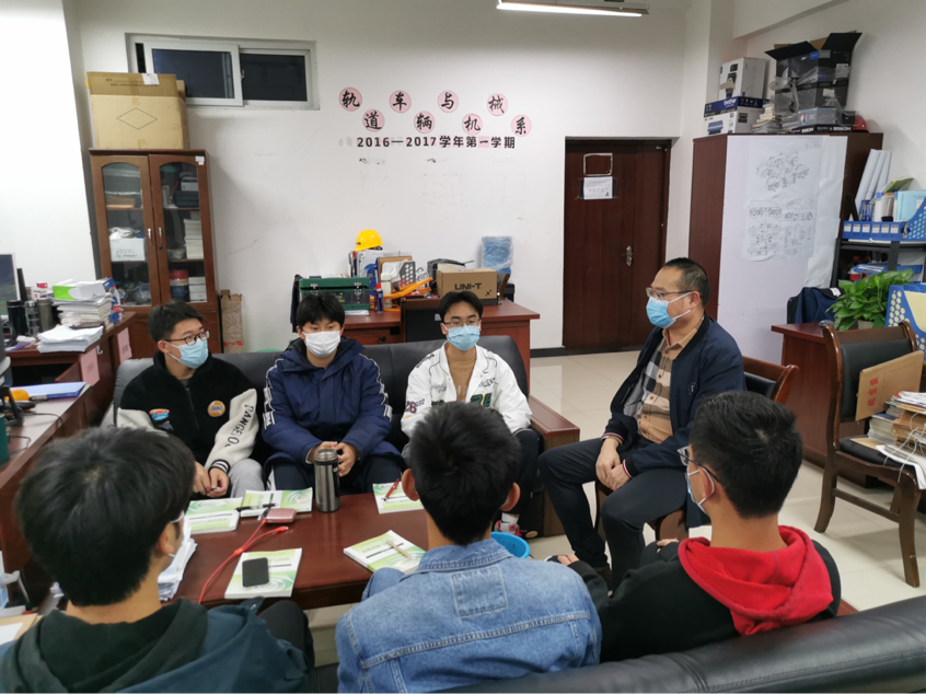 与王涛老师的做法不同,铁道机车专业负责人金钊老师则是在17日晚上,把个人负责的A栋490寝室、铁道机车运用与维护专业的陈诚、王璐、鲁炜、张焱森、曹昌鑫、管毅涵6位同学,“请”到了自己所在的教学楼D栋409办公室,听取意见建议,引导同学们疫情期间发扬“火车头”精神,进一步端正学习态度,不断提高自身的专业综合能力。
