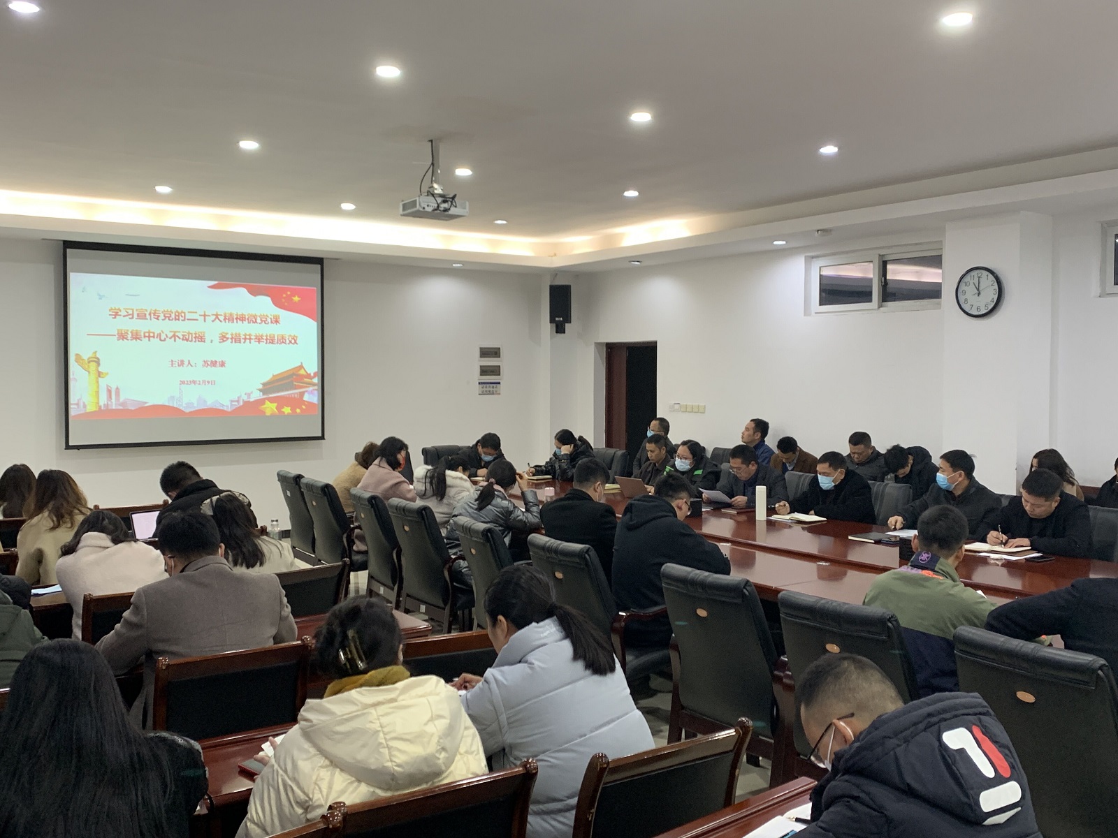 根据学院工作安排,2月9日上午,轨道交通学院党总支召开学习党的二十大精神专题会议,党总支书记苏健康以“聚焦中心不动摇 多措并举提质效”为题,为学院全体教职工讲授专题党课。学校党委委员、副校长唐春林参加会议。