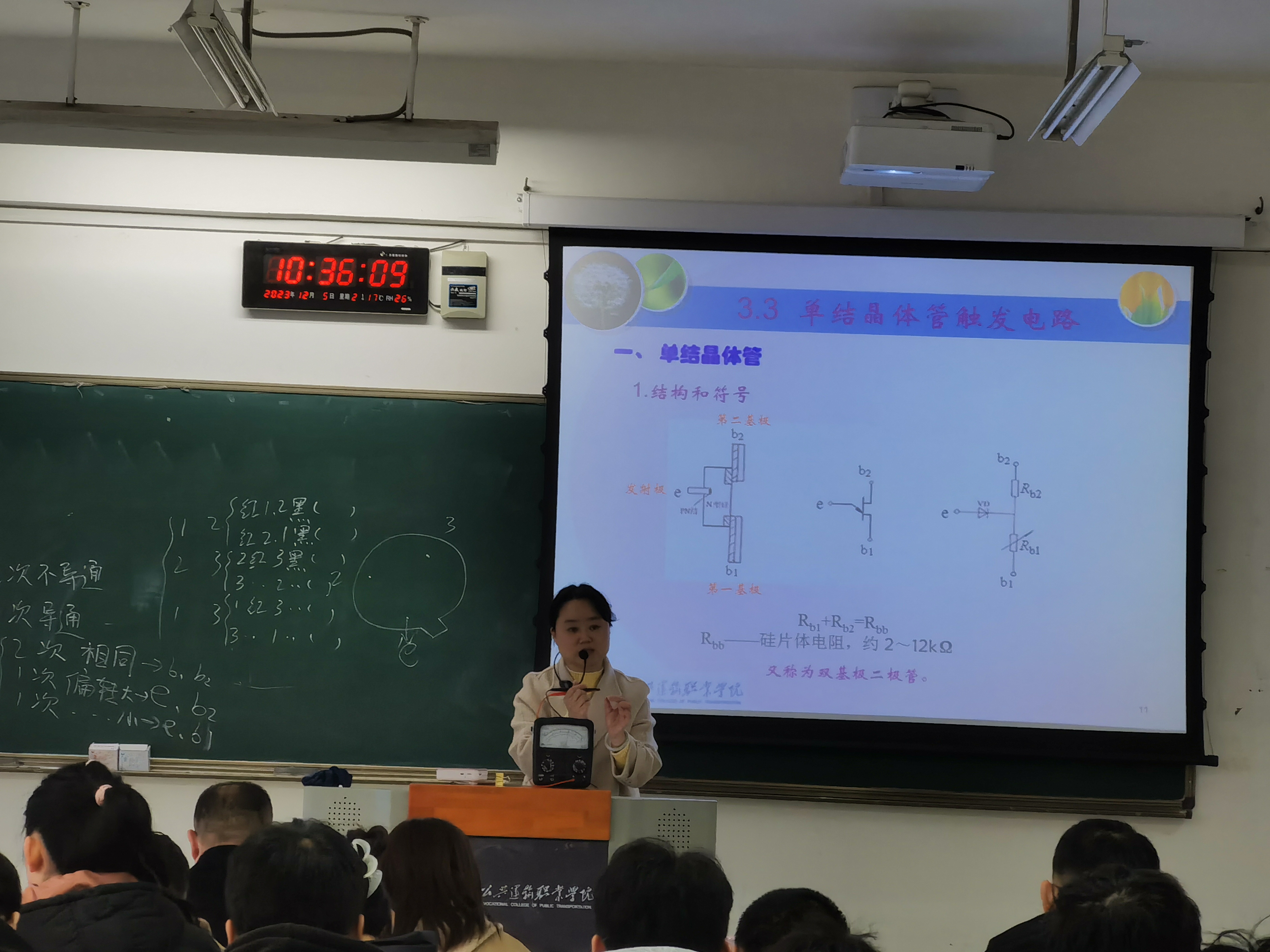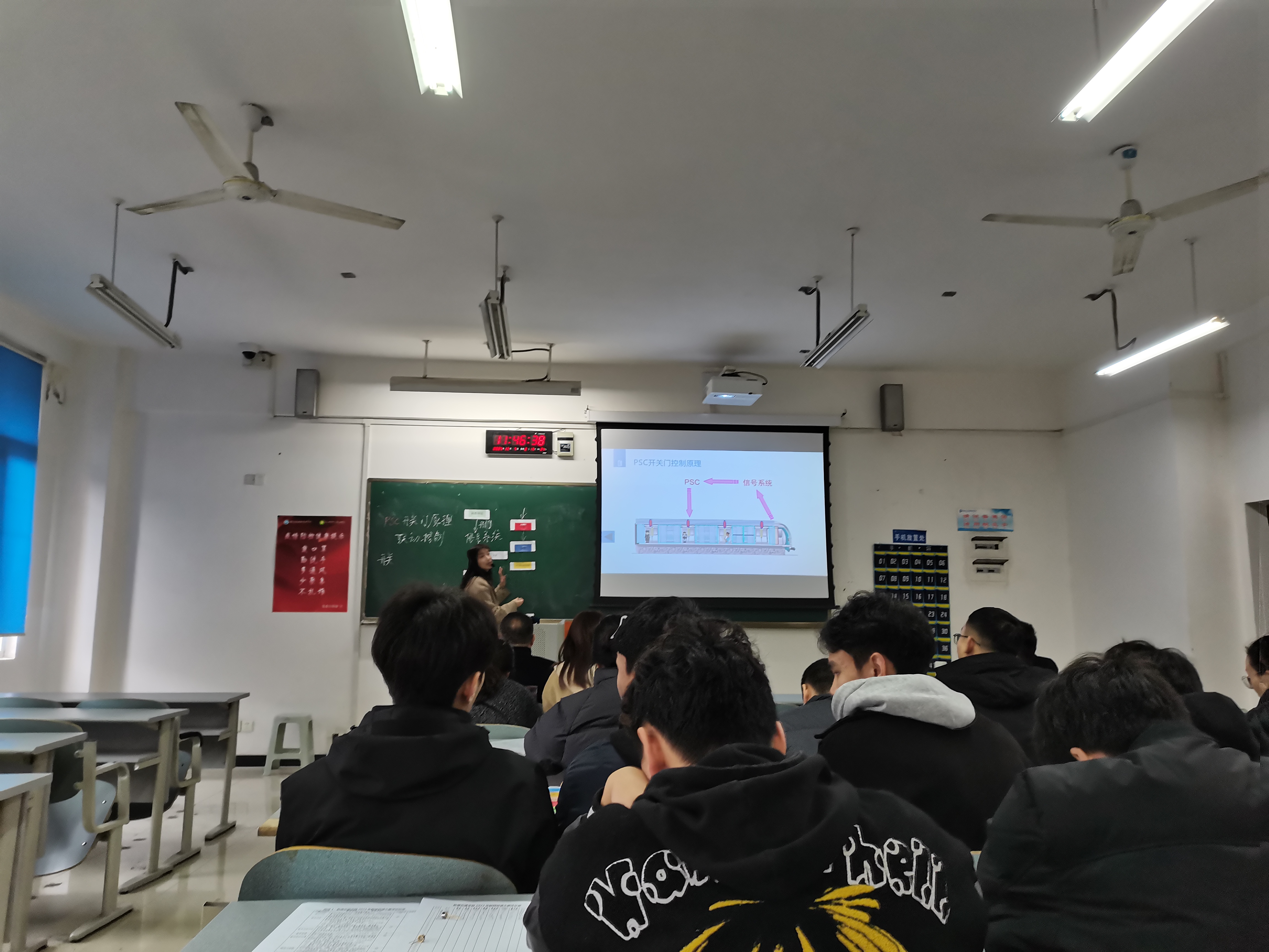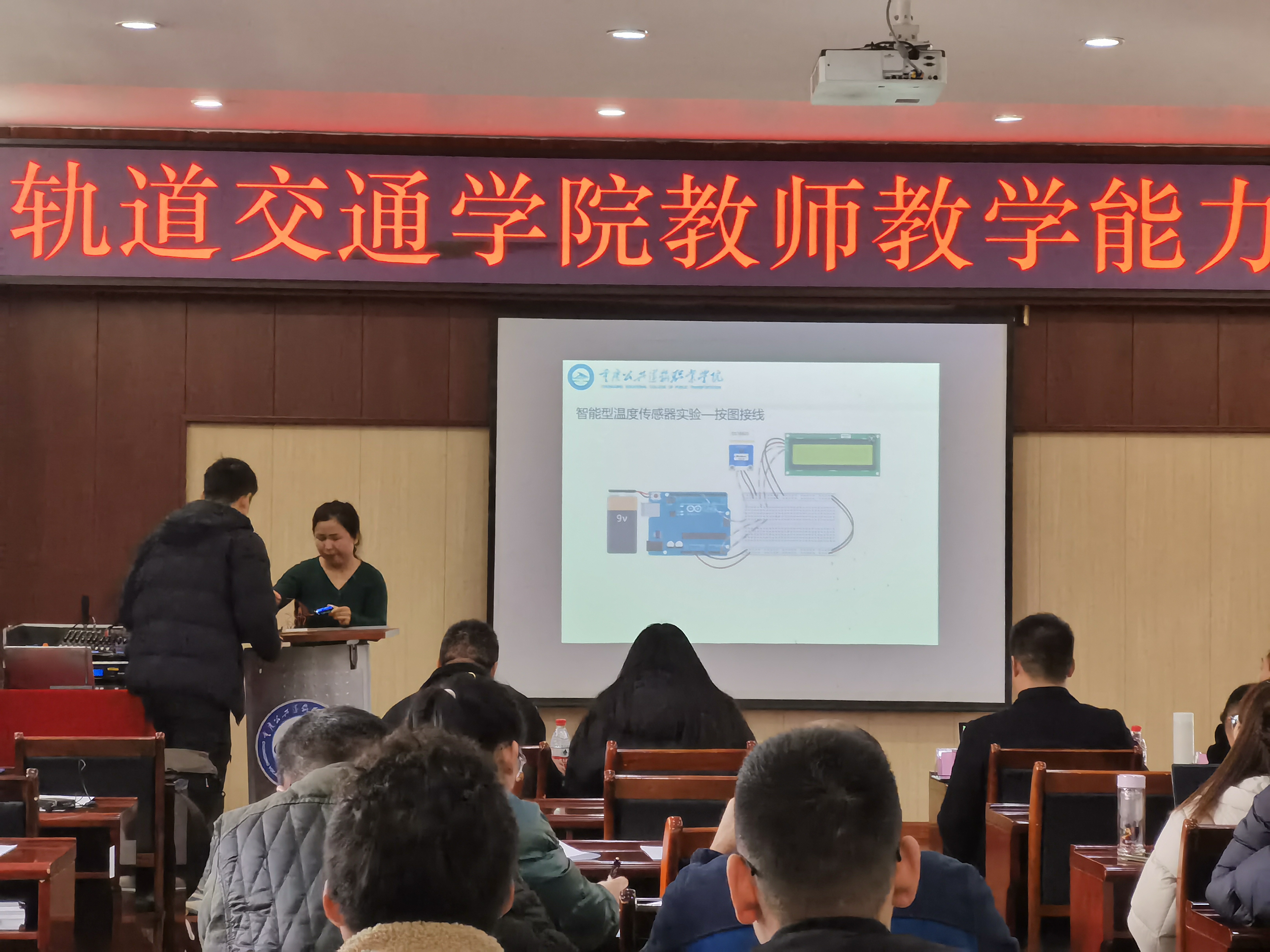 此次比赛分别于12月4日、5日在会议室A401和教学楼B408进行,专任教师和辅导员根据自身专业特长和教学实践经验选取一个课程知识点进行15分钟以内的教学内容现场讲授。城市轨道车辆应用技术专业负责人刘郭平以“CAD实训-绘图命令”进行了讲述;专业组成员刘志龙老师围绕“受电弓升降弓工作原理”,从受电弓的气路组件的结构组成、受电弓升降弓工作原理、受电弓升降弓工作时间和升降弓压力的调整方法几个点展开讲述,取得了良好的教学效果;王玲老师的“温度传感器”课采用了理实一体化教学,她从温度传感器的原理、实验演示、学生操作练习进行了精彩展示;罗洪强老师的“道岔认知”课,他从书中图形和知识的缺陷进行了补充、道岔的各种类型、产生故障的原因、处置措施等进行了细仔分析,取得了好的效果。其他专业组教师紧扣教学主题,从教学目标、教学内容组织与具体实施过程纷纷作了精彩授课。