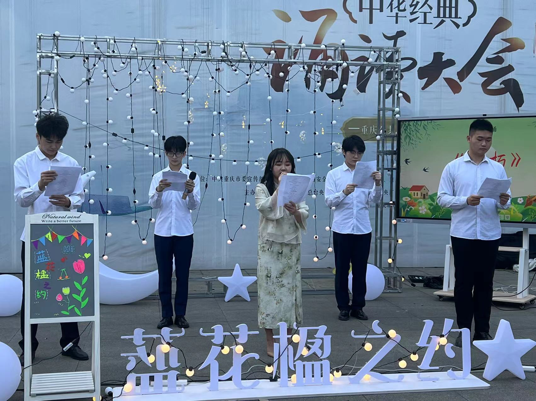 2024年第一期校园“蓝花楹之约”—清明诗会于4月1日在学校主校区浮雕广场举行。