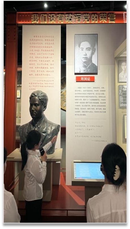 在学院党总支书记的带领下,参观了歌乐山革命纪念馆、红岩魂广场,馆内丰富的历史图片、实物展品、文字记载,展现了在中国共产党的领导下,红岩英烈们怀着救国救民的伟大志向,为了一个共同的革命目标,宁死不屈、视死如归的高尚情怀。