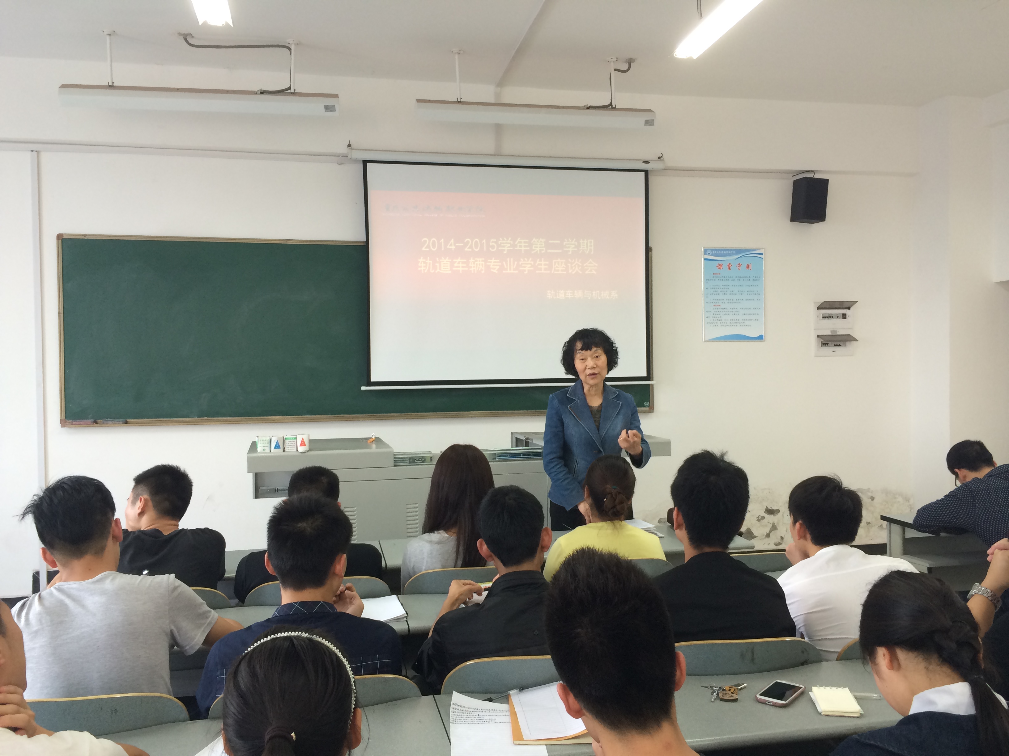 2015年5月6日下午16点在C408教室轨道车辆与机械系车辆教研室召开了学生代表座谈会。出席会议的领导有轨道车辆与机械系党支部书记丁晓莹老师、苏健康老师、邓万财老师、刘青老师、李亚萍老师,以及2013级、2014级学生代表。此次座谈会的主题是学生代表对学院的生活环境、教学方式等等提出意见并与老师们交流。