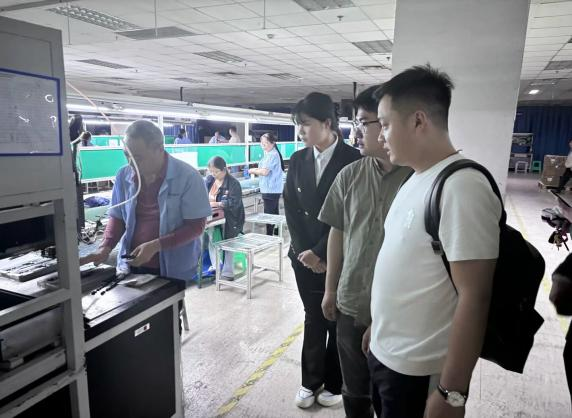 来到企业,师生首先走进宇海精密制造有限公司的生产车间、研发中心等地进行实地参观。车间内,先进的生产设备有序运转,自动化生产线高效作业,师生们近距离观察精密制造的全流程,企业技术骨干为师生们详细讲解产品的制造工艺、质量管控体系及先进的生产技术,使大家对精密制造行业的前沿发展和实际岗位需求有了更为直观、深刻的认识。