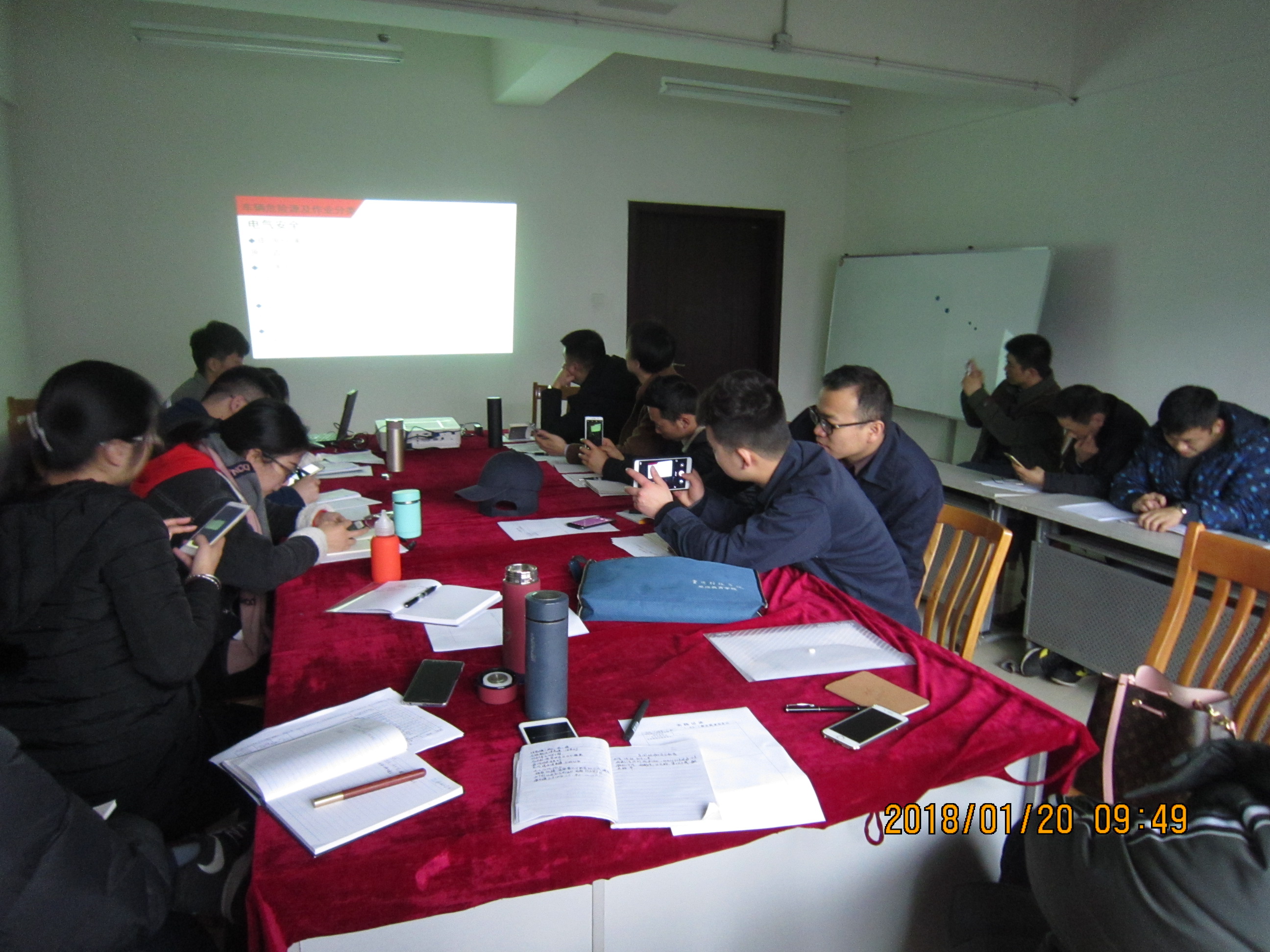 培训期间,首先在赖家桥培训大楼进行了公司级安全培训并全体教师通过了安全考试;之后,主要在运营一公司车辆车间、乘务车间及大修公司车辆大修部地铁车大修车间进行了理论+实践的学习。培训内容包括车辆维保部组织架构,乘务专业规章、规程,车场概况及调度室设备操作,运转内勤标准作业流程,信号灯、信号旗、徒手信号培训,车辆系统知识(电气:牵引、制动、空调、广播、门机、监控等;机械:转向架、车钩、受电弓等),车辆大修知识、故障及应急处理等。