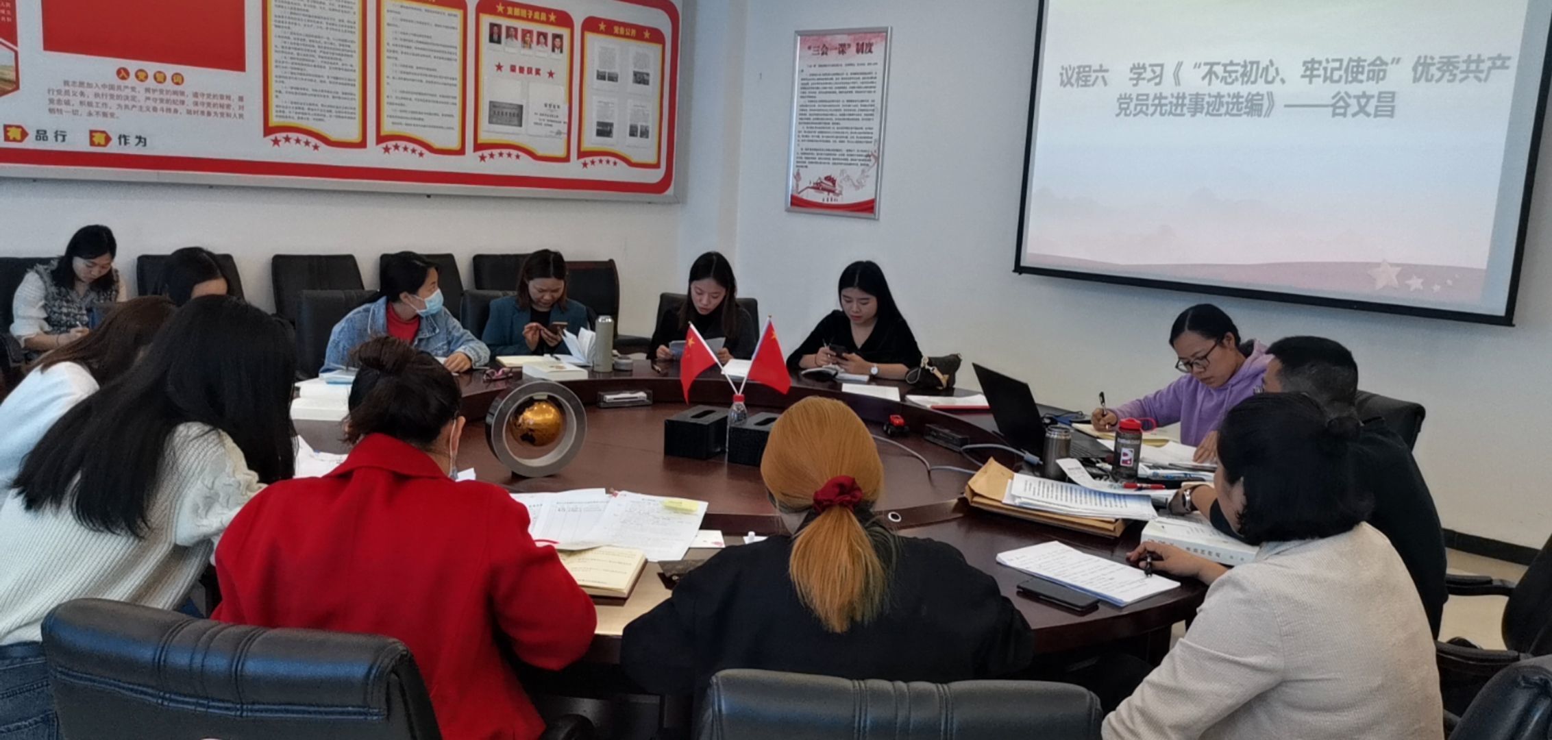 苏健康同志首先对11月份意识形态做了研判,对网络舆情及敏感点进行了梳理,要求全体党员同志加强舆论引导的重要性,不断提高网络舆情引导能力。随后,杨蛟同志带领全体党员集中学习了《廉政教育资料》、《中国共产党纪律处分条例》;钟馨怡同志则带领全体党员学习了《中国共产党章程》等重要内容;再次,余航、宁婉芝、冉龙燕等同志分别带领全体党员学习了《习近平关于“不忘初心、牢记使命”论述摘编》、《“不忘初心、牢记使命”优秀共产党员先进事迹选编》、《习近平谈治国理政》等重要内容,杨霞、刘仙两位同志对今天的主题党日活动作出交流发言。