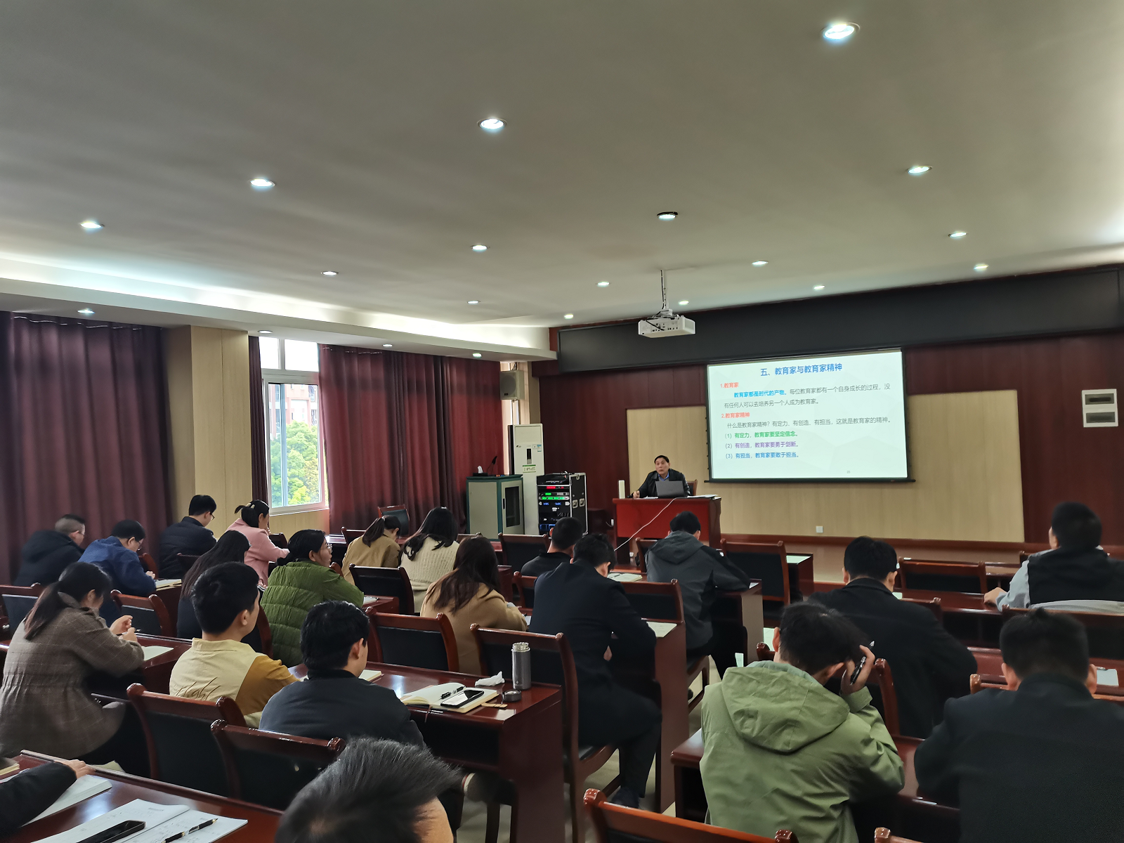 会上,彭克发教授还诠释了教育家精神的核心内涵,强调教师需具备“定力、创造与担当”,以“心有大我、启智润心”的育人智慧投身教育事业。他结合三类“境界层次”的哲理,鼓励教师向高人学习、与同行协作、包容不同声音,并寄语全体教职工“用放大镜发现学生优势,用望远镜规划成长路径”,实现教育力量的倍增。
