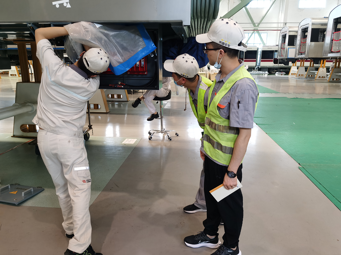 轨道车辆与机械系副主任蒋晶、综合办公室主任张波到重庆中车长客轨道车辆有限公司企业生产一线,看望正在参加暑期社会实践的教师,与企业专家、技术能手交流,了解企业人才需求、企业实践等情况,叮嘱参加企业实践锻炼的教师做好疫情防控和安全工作,珍惜机遇、主动学习,不断提升自身专业教学和科研能力。