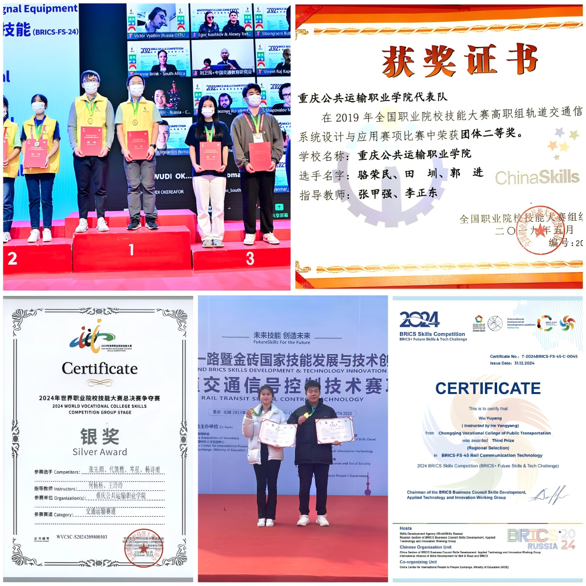 作为重庆市信号类职业技能竞赛主要承办单位,本专业积极践行“以赛促教、以赛促学”理念。师生踊跃参与世界职业技能竞赛、“巴渝工匠杯”竞赛等各级赛事,累计荣获国家级奖项10余项、省部级奖项30余项。其中,2022年在金砖国家职业技能大赛铁路信号设备维护赛项中勇夺一等奖,创造了西部同类专业历史最佳成绩,充分彰显了专业人才培养的卓越成效。