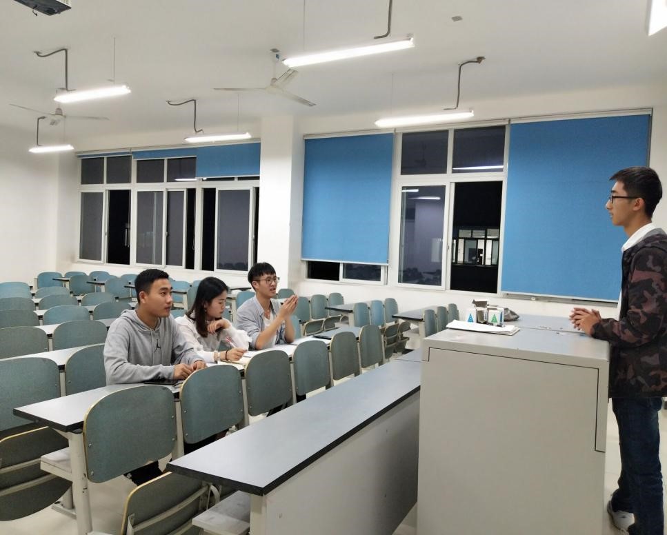 面试考官由第五届办公室助理主任张廷慧,办公室助理副主任袁鹏、颜靖和办公室助理干事陈劲翰组成,共4人。面试开始由陈劲翰组织大一同学有序的在教学楼C503教室等候面试。