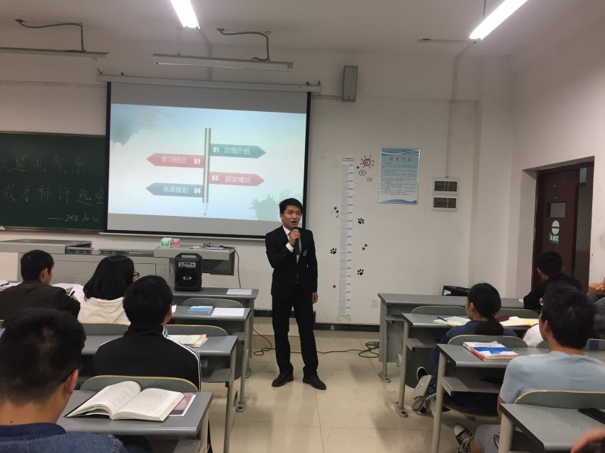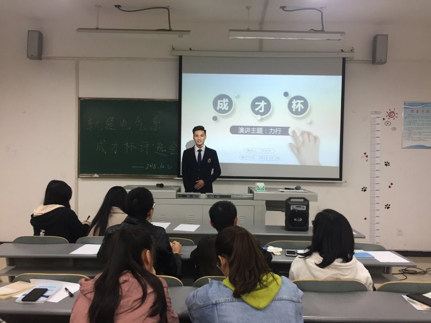 为了激发同学们学习的热情,为推动学院教育教学改革,巩固“人人有才,人人成才”的教学理念,发扬“文明,诚信,和谐,上进”的优良校风,轨道电气系于 2018 年 10 月 30 日19:00,在教学楼 B104 举行成才杯优秀学子评选活动。出席此次评选活动的有轨道电气系学工办主任胥迅老师、机电教科研团队副主任邓勇老师、通号教科研团队张甲强老师、全体辅导员老师。