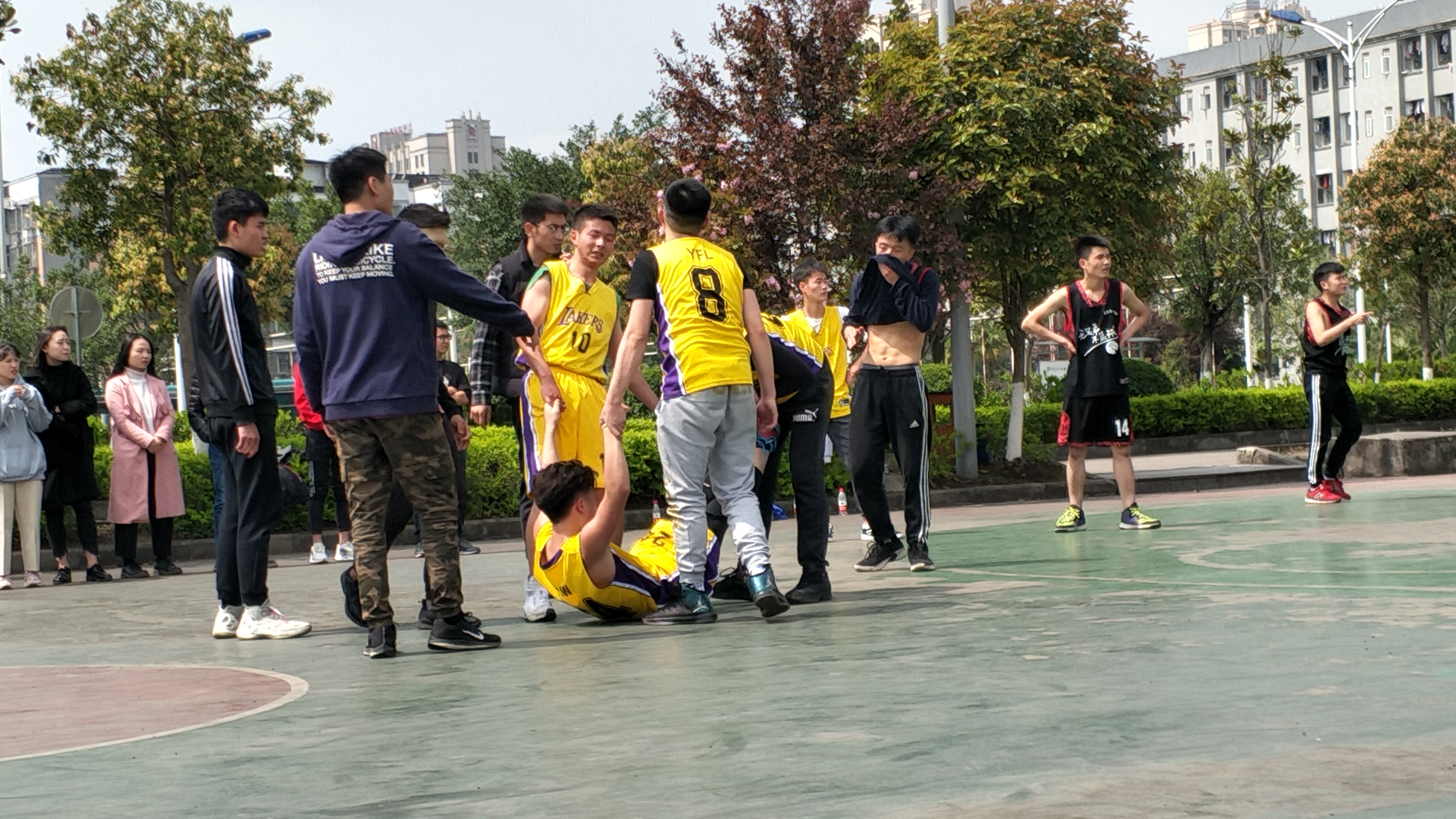 比赛当天风和日丽,气温宜人。第一场比赛共计4个班级,分别由应用电子1701vs轨道机电1803,铁道信号1801vs电气自动化1701。比赛开始,所有参赛队伍铆足干劲开始了对班级荣誉的争夺,球员们在赛场上横跨、转身、跳跃、投靠,动作简单、干净、利落,球鞋在地面摩擦的声响似乎也成一场不一样的音乐盛宴。赛场上的同学争先恐后、你追我赶,赛场下的观众也不甘示弱、热火朝天地给自己班级加油打劲。