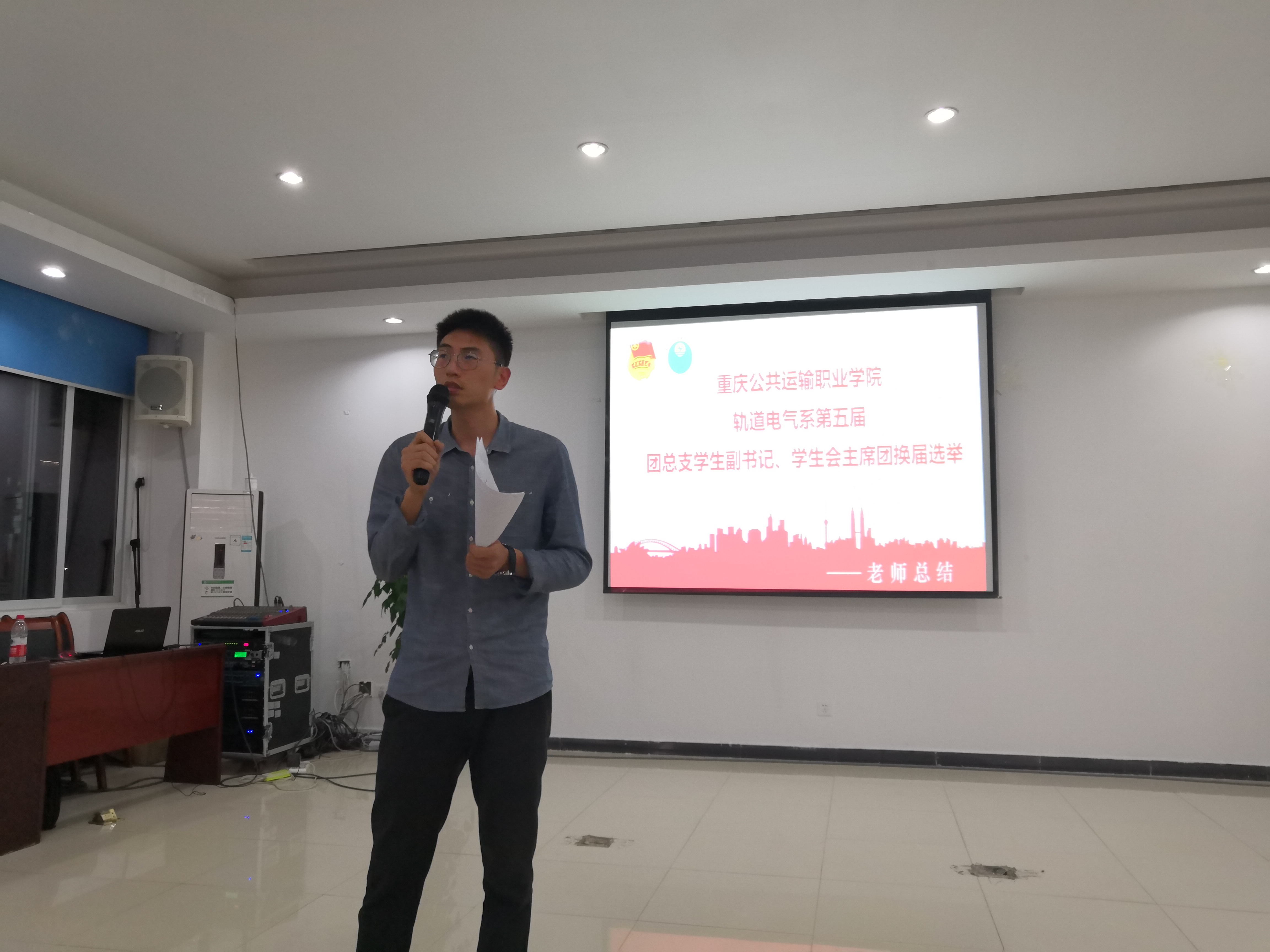 为培养一批高素质、高水平的学生组织干部,更好地促进系部学生工作建设。2019年5月30日19:00点整,轨道电气系于教学楼A栋403举行了第五届团总支学生会主席团换届竞选会。