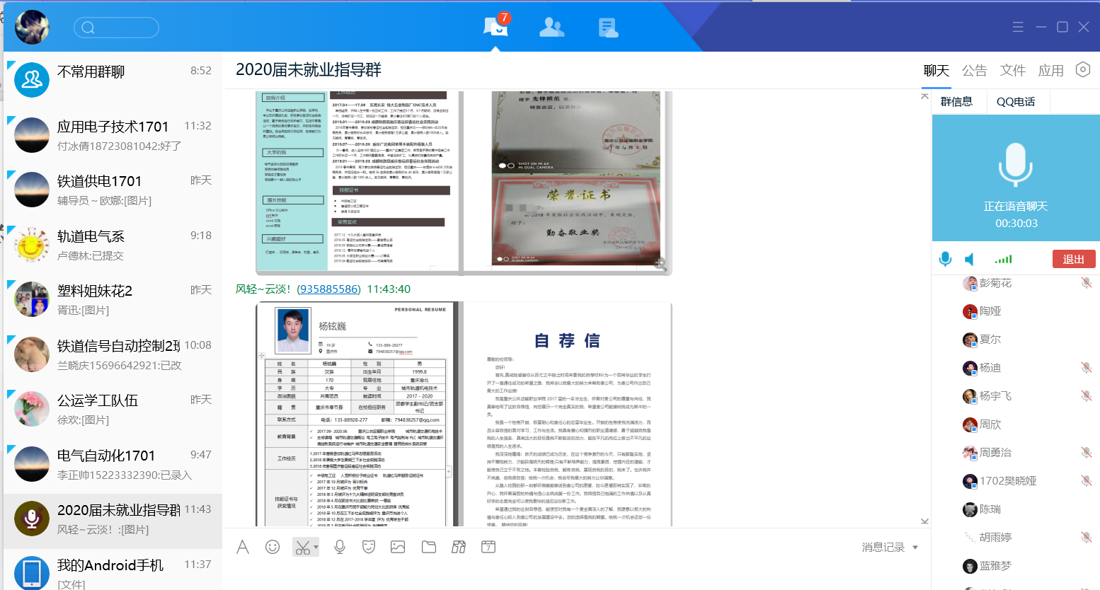 为贯彻落实习近平总书记关于坚决打赢疫情防控阻击战的重要指示精神和党中央、国务院决策部署,切实做好2020年学校毕业生就业工作,2020年3月12日上午10点,轨道电气系欧娜老师对目前尚未落实就业单位的2017级学生进行了线上就业指导。