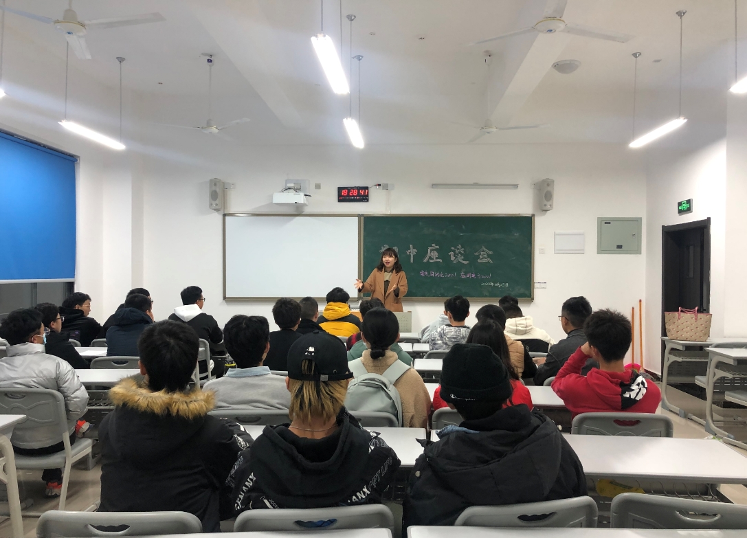 为推进师生交流,提升大学生职业心理素质,促进学生文化素质与身心素质的协调发展,2020年11月25日晚,智慧交通学院班导师马合婧、侯晓娟老师组织2020级电气自动化、应用电子专业全体学生在新校区B101开展了“期中交流座谈会” 暨自我探索系列主题班会。