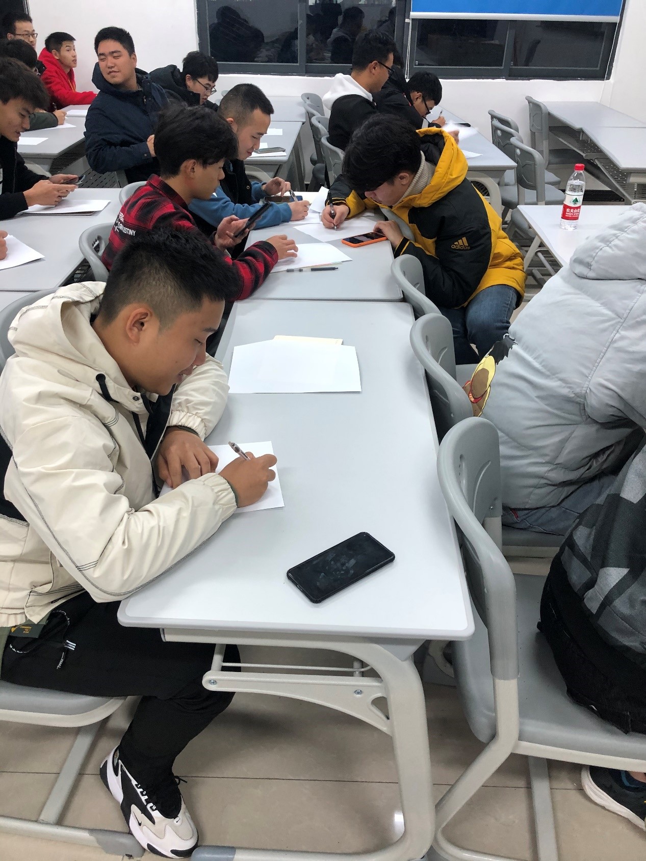 首先,由两位班导师与学生就学习方法、大学生涯规划等方面进行了深入的交流,并针对学生入学以来在学习、生活中所遇到的问题进行细心解答。随后,班导师马合婧带领学生开展自我探索主题活动。作为国家二级心理咨询师,马老师运用专业的心理知识引导学生从生理自我、心理自我以及社会自我三方面进行自我探索。在“我的自画像”和“我的目标”环节中,学生通过在纸上描绘自己的特点以及写下自己的“远景、中期、近景目标”方式,深刻的感受到未来离自己并不遥远。最后班导师侯老师从自我认识、学业环境等方面为出发点,引导学生正确规划自己的学习生活。