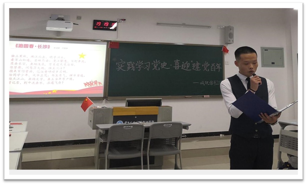 为庆祝中国共产党成立100周年,进一步增强同学们热爱党、热爱祖国、热爱社会主义之情,培养社会主义核心价值观,引导广大青少年坚定跟党走,感党恩的信念,4月26日晚,智慧交通学院城轨信号2002班,在新校区A305教室,特开展了“实践学习党史·喜迎建党百年”主题班会活动。