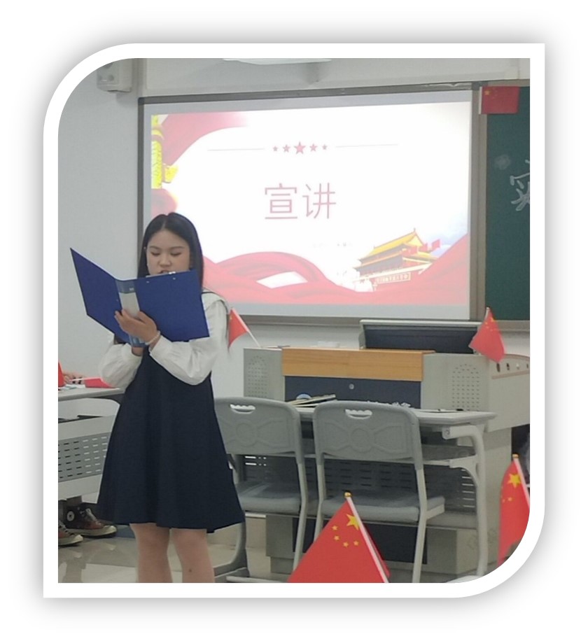 朱慧玲同学为我们做激情澎湃的党史宣讲,对于如何学好党史、用好党史,应该做到两个“牢记”和两个“必须”,必须深刻领会,用心思考,必须理论联系实际、学以致用、以学促用,历史是过去传到将来的回声,是将来对过去的反映,而党的历史像一条河流,曲折但是坚定地向着一个方向流动,任他洪水猛兽还是壁立千仞都无所畏惧、坚定不移的跟党走。