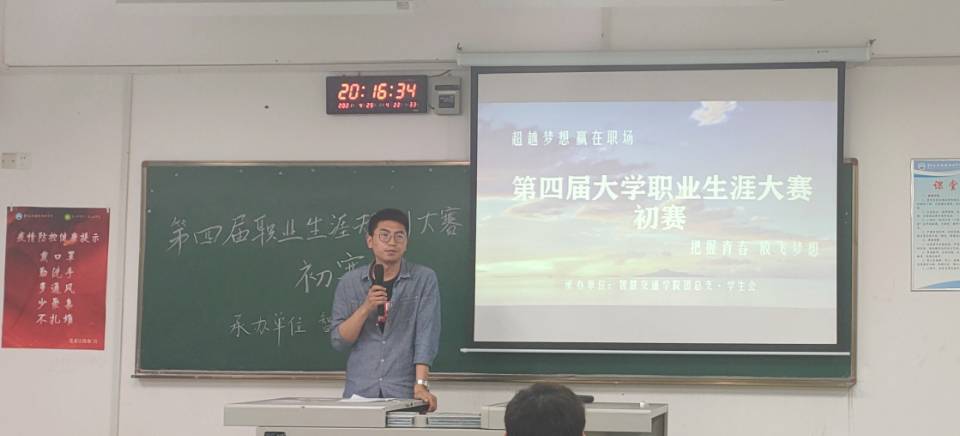 4月29日晚上七点,智慧交通学院团总支•学生会在老校区C306举行第四届职业生涯规划大赛初赛。参赛选手共15名。评审团成员有:古曼筝主任、袁延涛老师、赵祯老师、刁起萌老师、袁亮老师。
