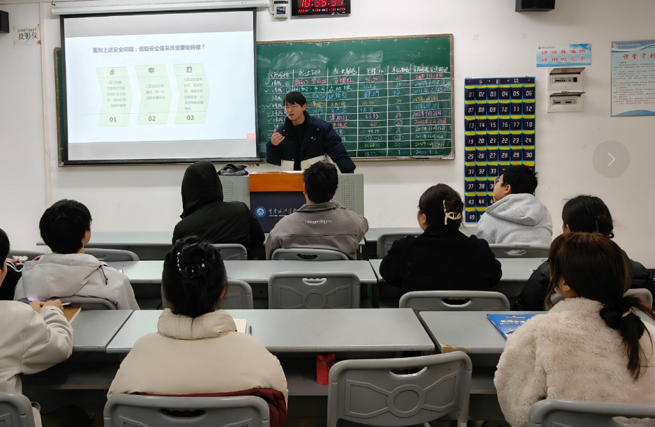 为加强学生安全员队伍建设,守牢安全稳定底线,2024年3月18日,智慧交通学院辅导员邹荣江组织开展智慧交通学院、铁道与建筑学院班级安全信息员专项培训。