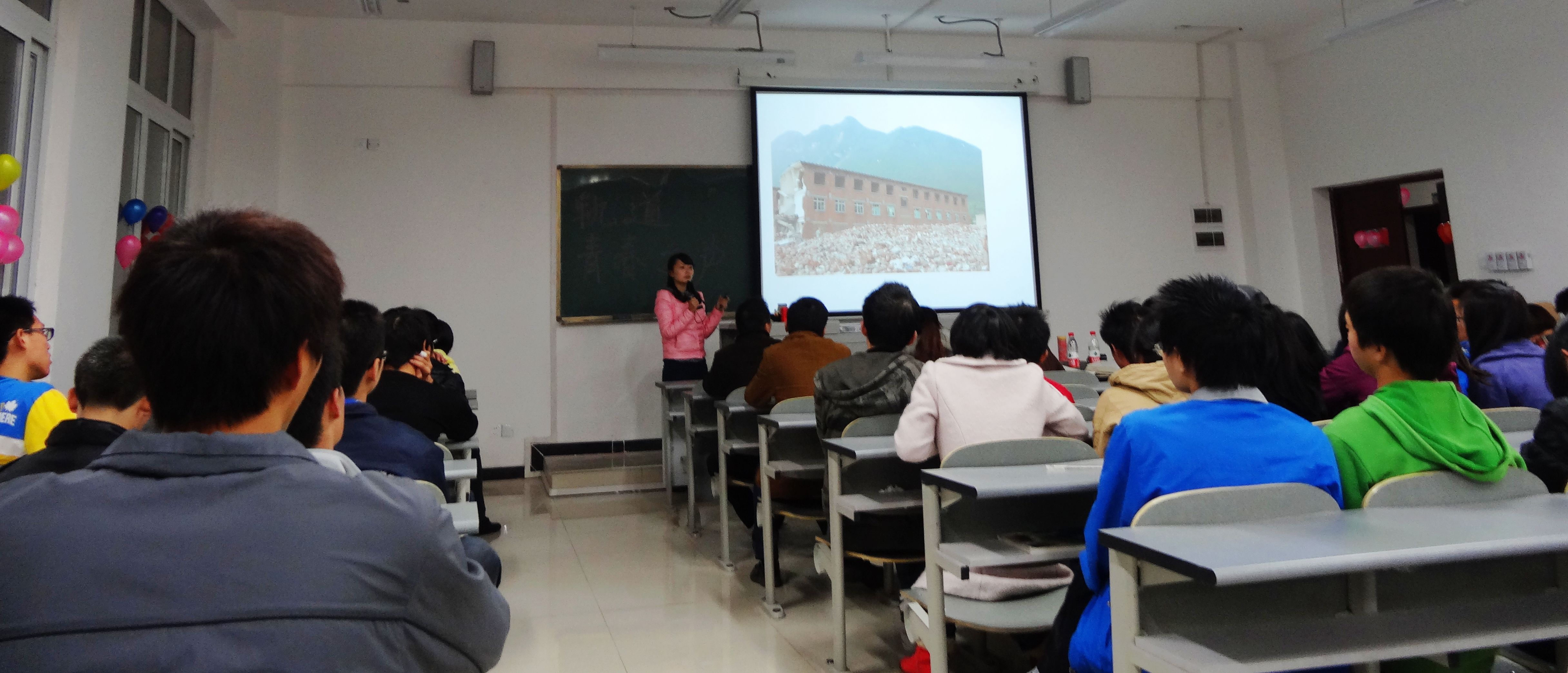 同学们把自己在假期发生的一些有意义的事情用演讲的形式分享给给大家:有用单车自驾游去西藏的同学,分享了自己一路上看到的美丽风景和经历的酸甜苦辣;有在轨道公司实习或做兼职时自己的一些感悟;有同学讲述自己当外拍模特时,为了台上十分钟的精彩而付出的汗水和艰辛;还有的同学选择在军营里流血流汗锻炼自己,过着有严格纪律的军旅生活......最后一个讲述经历的是侯晓娟老师,她给我们分享的是“读万卷书,行万里路”,当汶川发生地震后,她毫不犹豫的选择成为一名重建家园的志愿者,是她让我们感悟到在同一个地球,同一个国家,有的人却过着艰苦的生活,相比之下我们已经很幸福了,所以我们要迈开自己的脚步,才会知道周围方圆几公里并不是全世界。