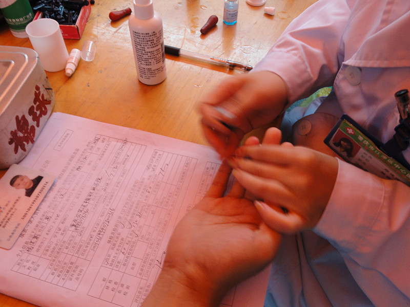 同学们大多都是第一次献血,对献血大都十分陌生与些许紧张,但是相互间的一个微笑化解了忐忑的心情。按照流程,填好表格,验好血,排着队准备献血。