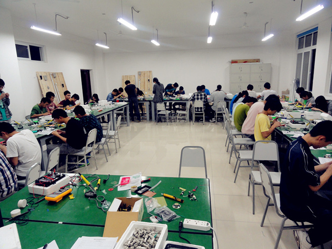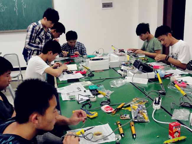 在三周的实训课程中,为保证实训的教学质量和进度,轨道交通系各实训教师采取了倒班教学,利用白天正常上课及晚上时间进行班级倒替授课。本次电子实训通过教授学生对普通电子元件的判断与特性识别、元器件基本作用原理及器件焊接等练习达到使学生理论学习与实践操作紧密结合的目的。
