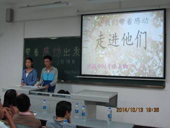 在《感动你我》的音乐中,感恩活动正式拉开帷幕。在观看一段《感动中国2011年度人物颁奖典礼》视频后,同学们都报以热烈的掌声,许多同学掩饰不住内心的激荡,潸然泪下,并踊跃发言。此次《颁奖典礼》的观看,给该班师生带来精神上的沐浴、心灵上的充电、思想上的升华,是新学期落实立德树人这个根本任务的新举措。在榜样力量的引领下,该班全体学生将会以更加饱满的热情积极培育和践行社会主义核心价值观,凝聚和释放社会主义核心价值观的正能量,为争做优秀大学生、成就优秀创业青年,书写美好篇章。