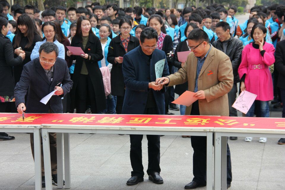 陈兴劼主任主持启动大会正式开始,何友全主任为本次活动致辞,丁晓莹书记讲述活动推进内容。工匠精神近年来作为荧幕上的关键词,引发了众多心系祖国发展之人的阐述。轨道电气系作为技术支撑的一个大系,阐述并学习其思想精髓义不容辞。会上教师,学生代表相继解读并表明决心。各班学生代表接受授旗大声喊出班级口号并宣誓.