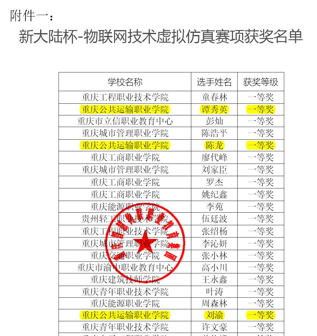 近日,在2021年成渝地区双城经济圈职业院校邀请赛-“新大陆杯”物联网技术虚拟仿真赛项中,澳门正规电子游戏平台智慧交通学院榜上有名,喜获一等奖3项、二等奖6项、三等奖9项,展示不俗实力。获一等奖学生分别是电气自动化技术(专本贯通)1901班谭秀英、刘渝,电气自动化技术(专本贯通)1902班陈龙荣。