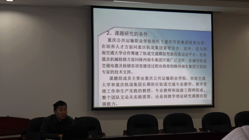 2014年1月10日下午A403会议室,轨道交通系主任唐春林做了重庆城市轨道交通模拟仿真实训基地建设的研究与实践开题报告。学院院长赵月望、副院长张健等领导和专家出席了本次开题汇报。
