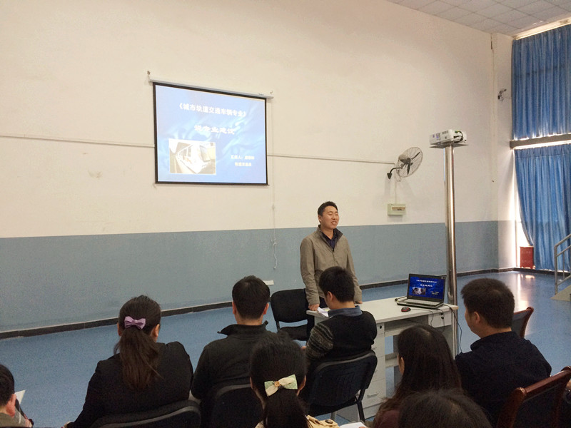 2014年3月19日下午,轨道交通系在学院轨道交通技术实训中心开展说专业建设活动,系部主任唐春林就城市轨道交通车辆专业性质、专业定位、资源建设等方面进行了演说,系部全体教师及专兼职辅导员参加本次活动。