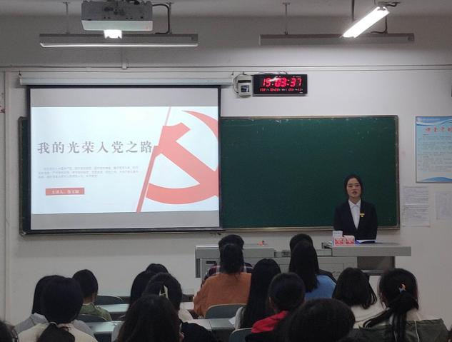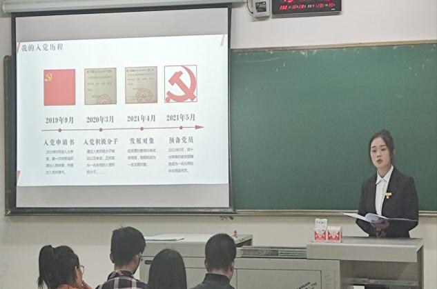 鲁文颖从赵世炎烈士的英雄故事引入,结合自己的入党动机、入党历程来阐述如何向党组织靠拢,用身边的真实的故事来激励同学应从思想上、组织上积极向党组织靠拢。