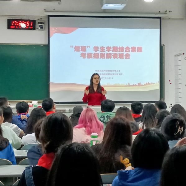 2022年5月9日下午,智慧交通与铁建联合党总支“煜”班在B103召开了《学生学期综合素质考核细则》解读会。本次会议旨在让同学们更好的了解“煜”班的班级文化,并以班主任解读考核框架+学员集体讨论指标细则的方式通过了班级考核办法。