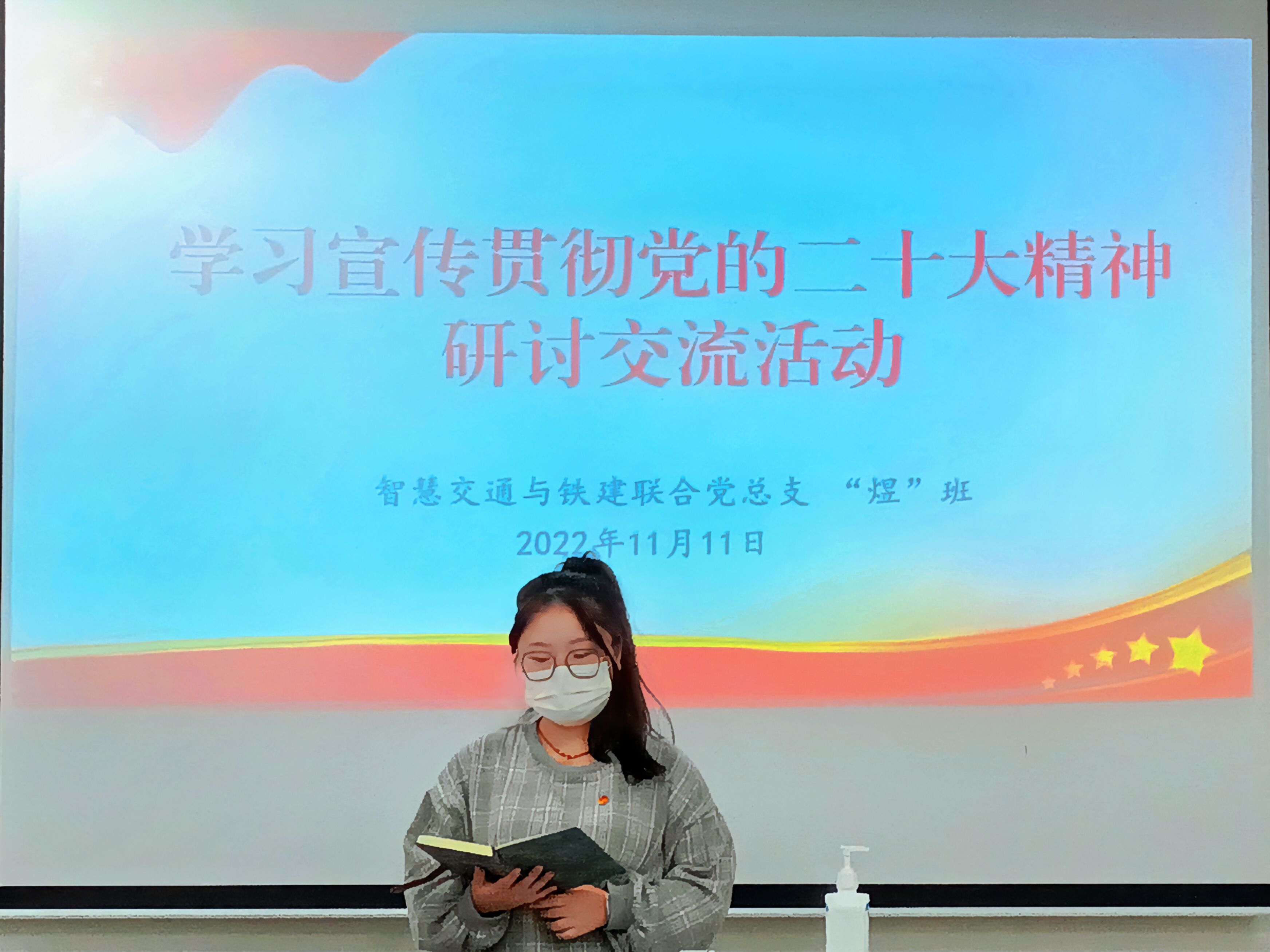 研讨交流环节,班级同学围绕党的二十大报告提出的2035年发展目标和习近平总书记对青年人的寄语,结合自身专业和实践经历,畅谈学习体会。