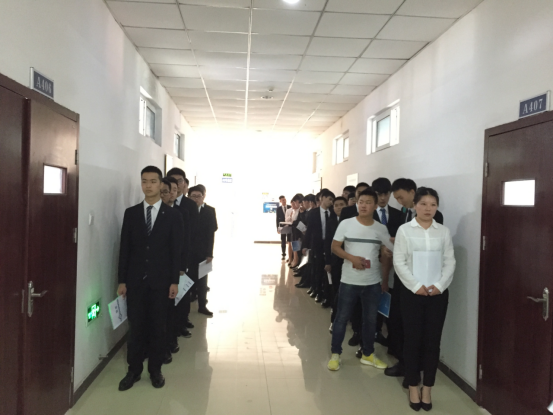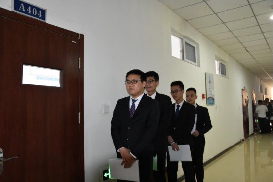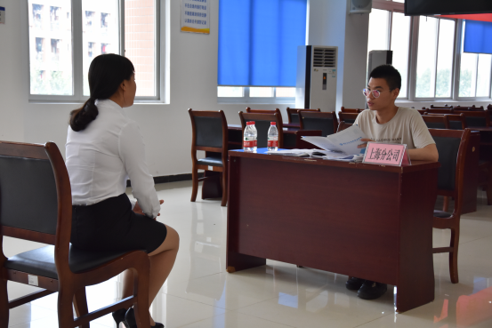 宣讲完后进入面试流程,七个分公司分别于教学楼A403、A401、A406、A404、A407进行面试,面试学生准备好个人简历和信息表,按照顺序对中意的公司投放简历然后排队等待面试。面试流程为:自我介绍、学习能力简介、社会实习实践能力简介、家庭意愿、对公司的认识、学习生活感悟、工作计划等,面试学生们胸有成竹,从容应对得到了招聘单位的一致好评。