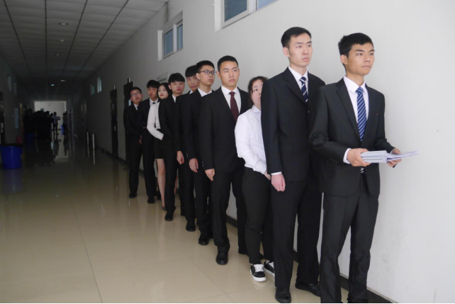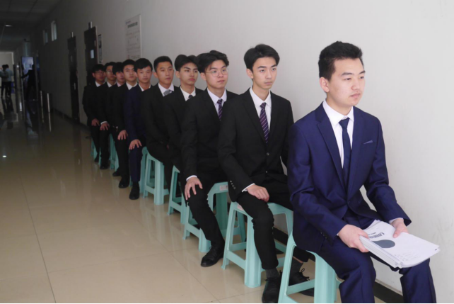在面试过程中,面试官主要从学生的社会实践经验、在校期间获得的荣誉、在校专业课程成绩等方面进行考核,调研学生的家庭是否支持其加入工作等方面对面试学生进行提问。应聘学子们表达清晰、从容应对,将自己吃苦耐劳、团结友爱、富有责任心的精神品质向面试官展现了出来,面试现场气氛融洽。最终中铁二局集团电务工程有限公司优中取优了60名学生进入了单位的后续考核。