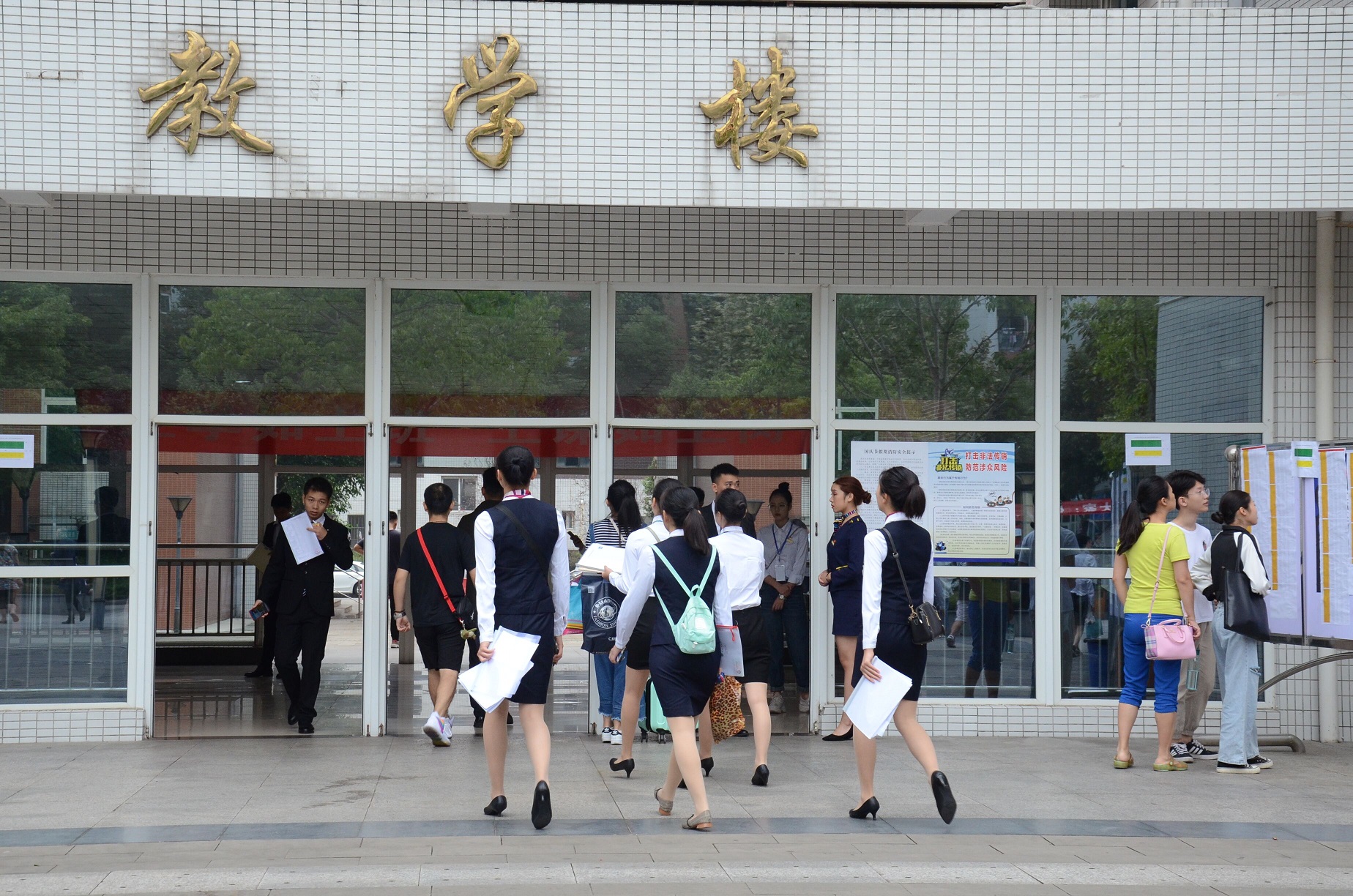 (图:学生陆续进入面试教学楼)