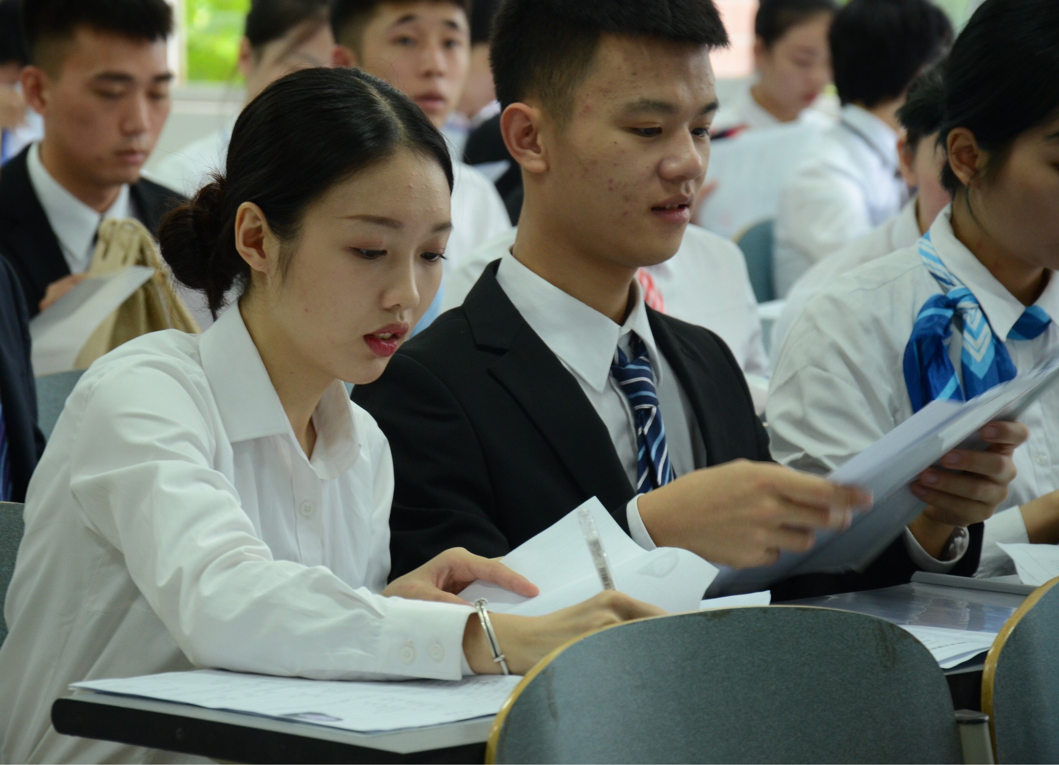 (图:学生在等候区准备面试)
