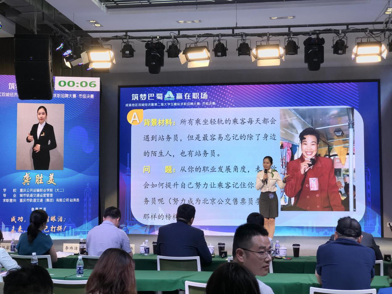 重庆运输职院龚胜美在“智慧巴蜀”成渝双城经济圈第二届大学生模拟求职招聘大赛市级决赛中荣获二等奖