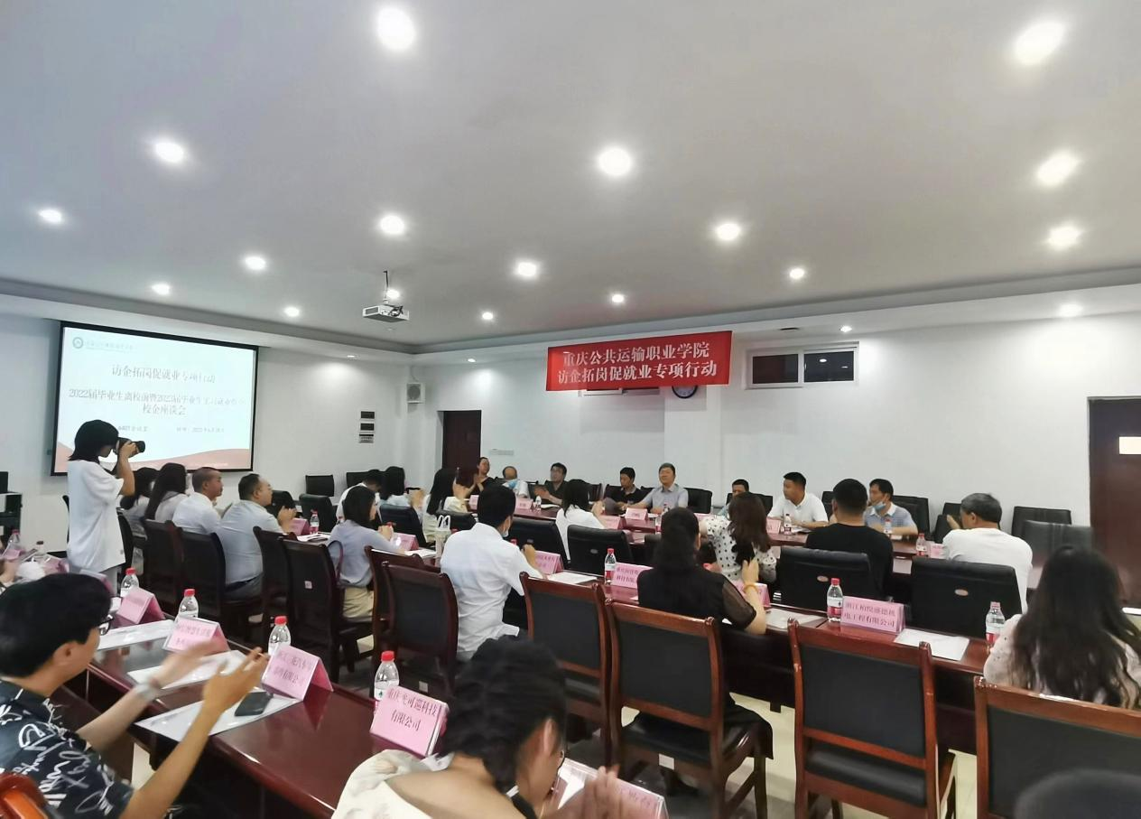 会前,学校副校长刘畅、招生就业处处长杨月高、招生就业处就业指导中心主任陈香、轨道交通学院院长蒋晶、智慧交通学院院长牟刚、智慧交通学院书记郭昌盛与各企业代表进行了校企座谈,围绕“访企拓岗促就业”就学校毕业生情况与与企业用工需求进行深入交流,推动就业供需有效对接。