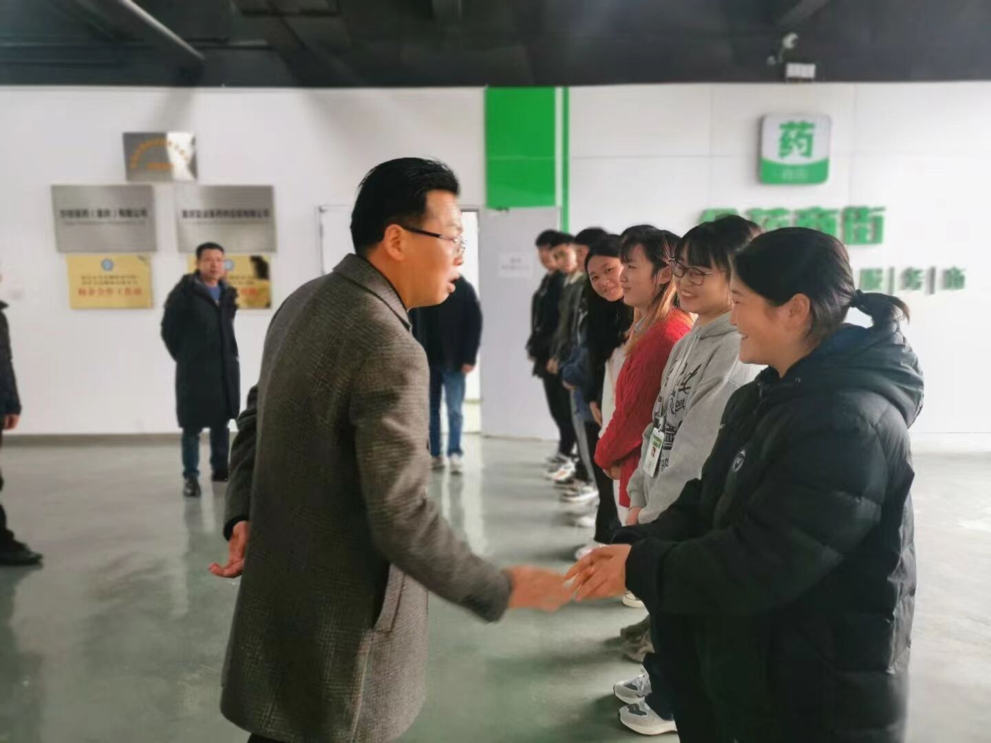 调研期间,张东旭看望慰问在工作的学校首届医药物流订单班毕业生代表,在公司执行董事、总经理熊智刚等企业领导的陪同下,实地参观重庆交运物流基地和公司展厅、生产和运营环境,深入了解企业发展历程、发展规划、主营业务、人才需求。
