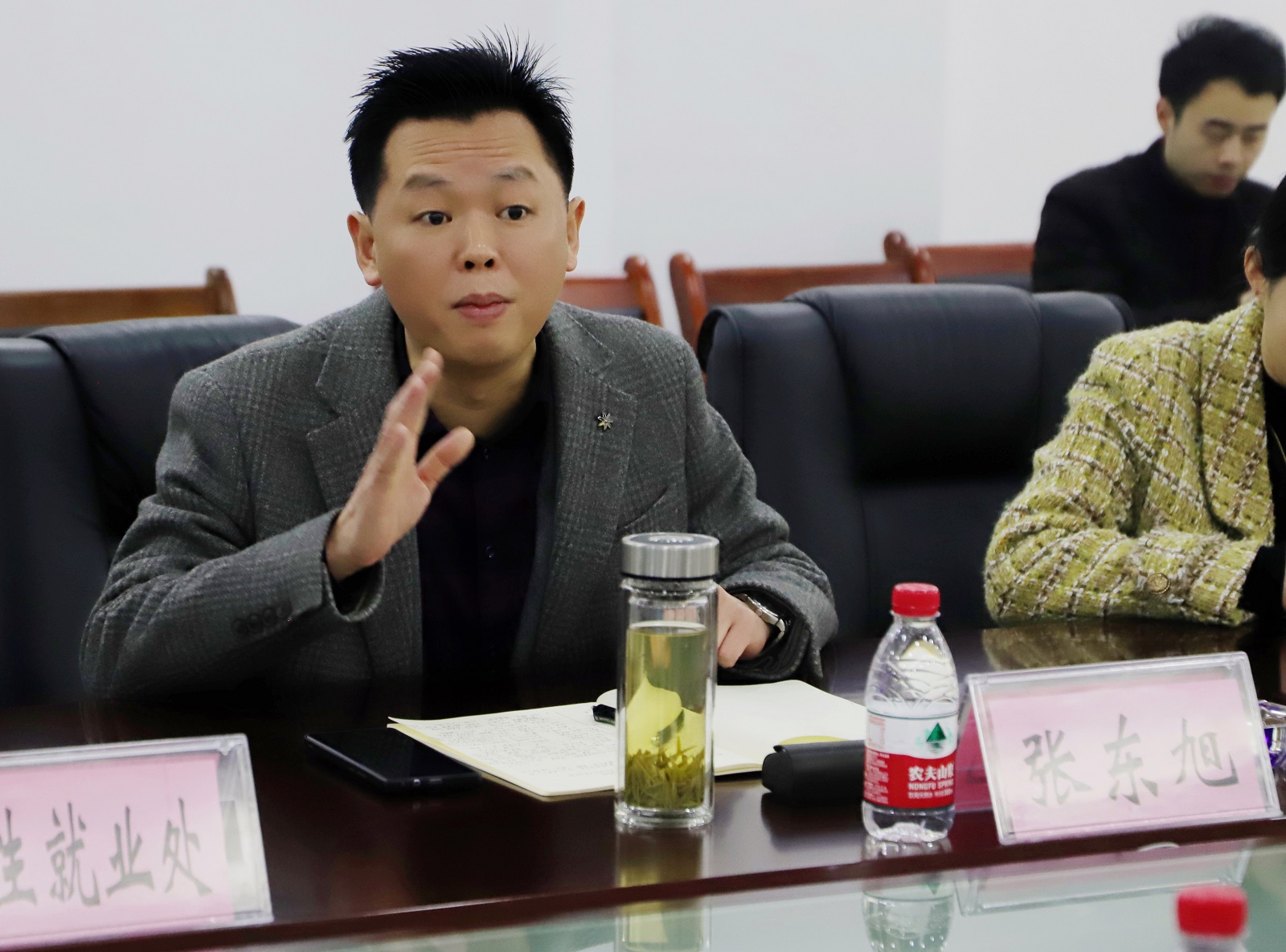 座谈开始前,企业来宾在张东旭的陪同下实地参观了实训中心。