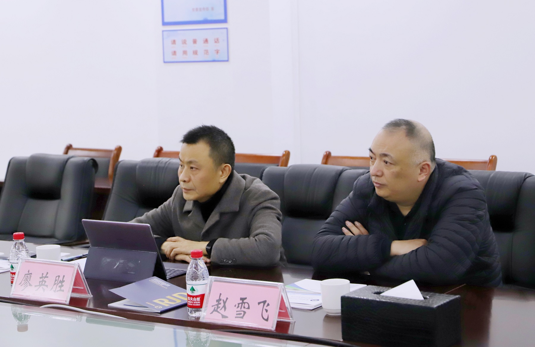 重庆瑞佳达科技公司董事长廖英胜、重庆红江机械公司党委副书记赵雪飞分别介绍单位基本情况,对学校办学特色、发展实力给予充分肯定,诚挚希望与学校达成合作意愿,进一步梳理合作点、增长点,建立全方位的产学研合作关系,努力实现产教深度融合、校企深度合作,携手开创校企合作互赢新天地。