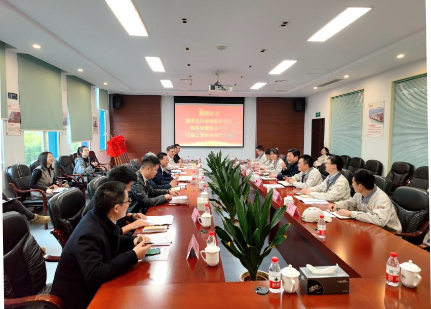 随后,张东旭等来到重庆中车四方所科技有限公司、重庆中车四方所智能装备技术有限公司,深入公司装备制造车间、科研实验室、智能运维试车台、智能运维数字平台考察学习,与公司总经理刘建、副总经理张丽等企业领导,围绕校企资源共享、教学新模式开发、设立校企工作站、建设共享研发中心等方面进行座谈交流。