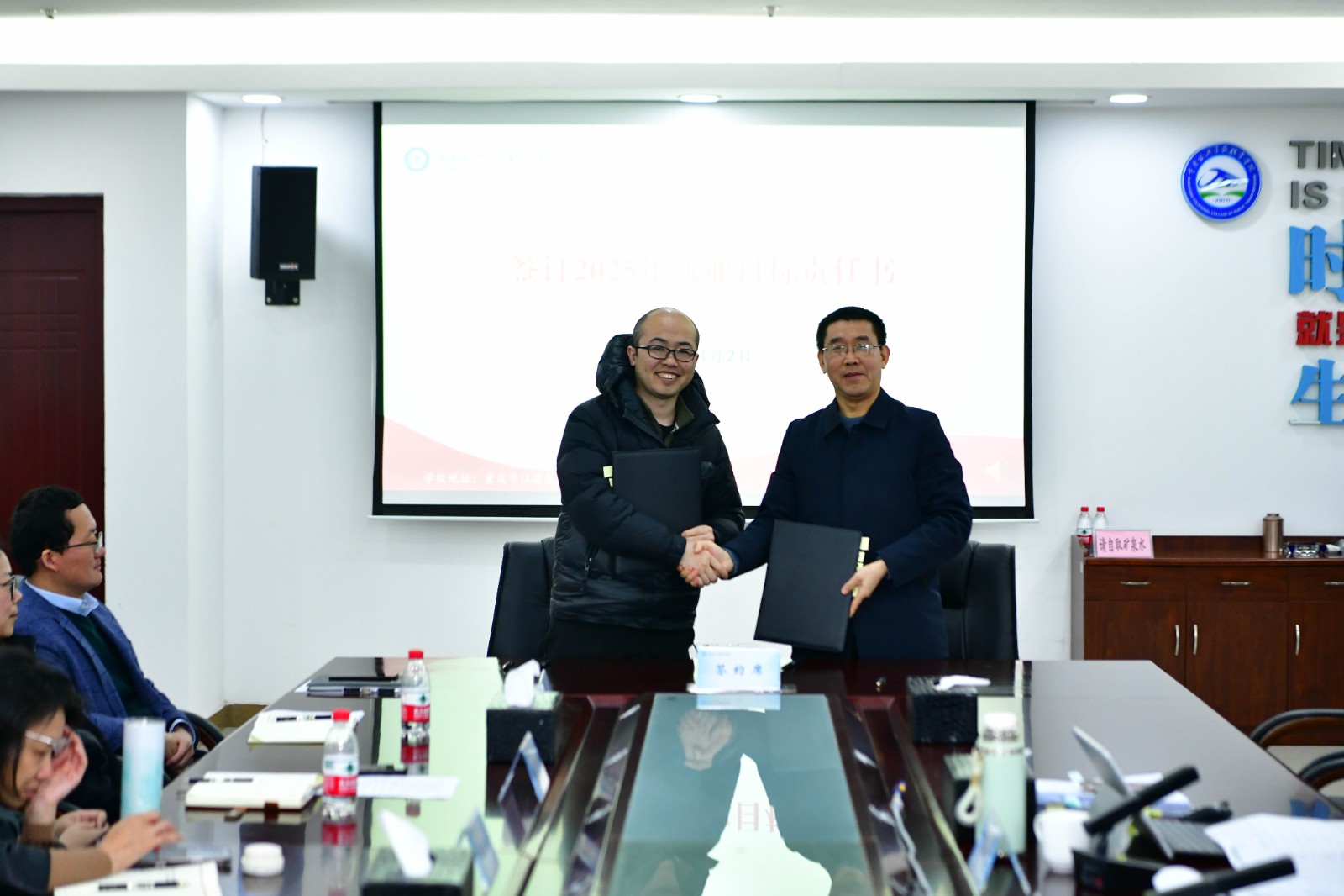 学校吴海峰校长在会上与各二级学院党政负责人签订《2025年度毕业生就业工作目标责任书》。