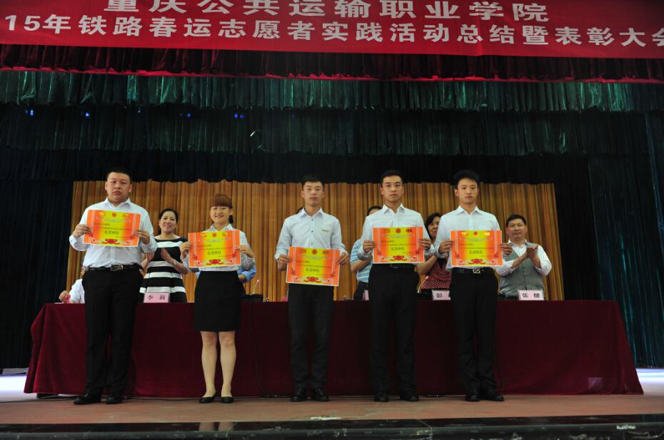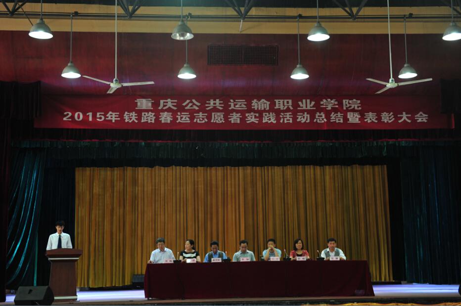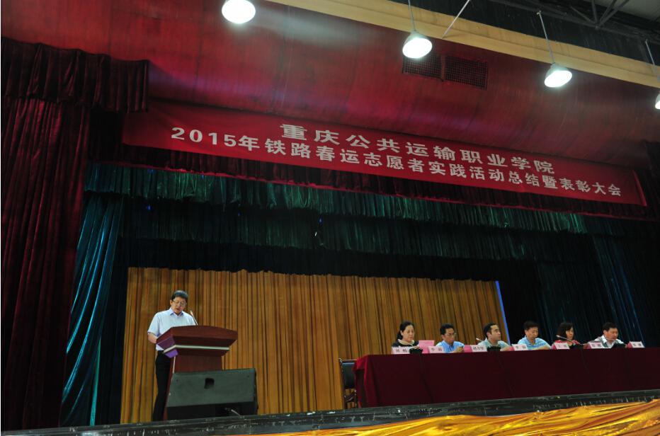 2015年6月4日14时,我院在学术报告厅隆重召开了澳门正规电子游戏平台2015年铁路春运志愿者实践活动总结暨表彰大会。学院李灿董事长、赵月望院长、党委彭超书记、张健副院长、刘畅副院长,以及特邀嘉宾成都铁路局重庆客运段王雨副段长,劳资科李莉科长出席大会。